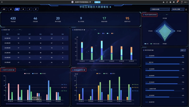 中共中央、國務(wù)院印發(fā)《關(guān)于深化教育教學(xué)改革全面提高義務(wù)教育質(zhì)量的意見》,《意見》強調(diào),落實立德樹人根本任務(wù),遵循教育規(guī)律,強化教師隊伍基礎(chǔ)作用,圍繞凝聚人心、完善人格、開發(fā)人力、培育人才的工作目標,發(fā)展素質(zhì)教育,培養(yǎng)德智體美勞全面發(fā)展的社會主義建設(shè)者和接班人。堅持“五育”并舉 全面發(fā)展素質(zhì)教育。在此背景下,運用大數(shù)據(jù)、人工智能等信息技術(shù),統(tǒng)計分析各項數(shù)據(jù),直觀呈現(xiàn)“五育”在學(xué)校的發(fā)展情況顯得非常重要。