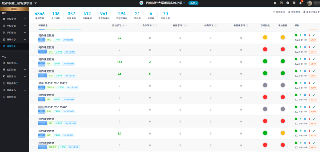 西南財(cái)經(jīng)大學(xué)附屬實(shí)驗(yàn)小學(xué),成立于2020年9月,是溫江區(qū)人民政府創(chuàng)辦并首批實(shí)行兩自一包辦學(xué)模式改革試點(diǎn)的公辦學(xué)校。 學(xué)校自2020年引進(jìn)醍摩豆智慧教學(xué)系統(tǒng),目前建置醍摩豆智慧教室40間,醍摩豆AI教研中心1間,經(jīng)歷三年時(shí)間的探索和實(shí)踐,學(xué)校形成了人工智能+教學(xué)場(chǎng)景、人工智能+研修模式、人工智能+優(yōu)質(zhì)資源庫(kù)的應(yīng)用模式。近日,小編采訪了西南財(cái)經(jīng)大學(xué)附屬實(shí)驗(yàn)小學(xué)信息中心杜良萍副主任,她從狠抓隊(duì)伍建設(shè),在“培”上下功夫;落實(shí)考評(píng)結(jié)合,在"用"上下文章;夯實(shí)教師研修,在“研”上求突破;固化數(shù)字資源,在“建”上見(jiàn)成效四個(gè)方面為我們講述了西財(cái)附小三年時(shí)間的蛻變和成長(zhǎng)。 為方便閱讀,采訪內(nèi)容以第一人稱敘述。