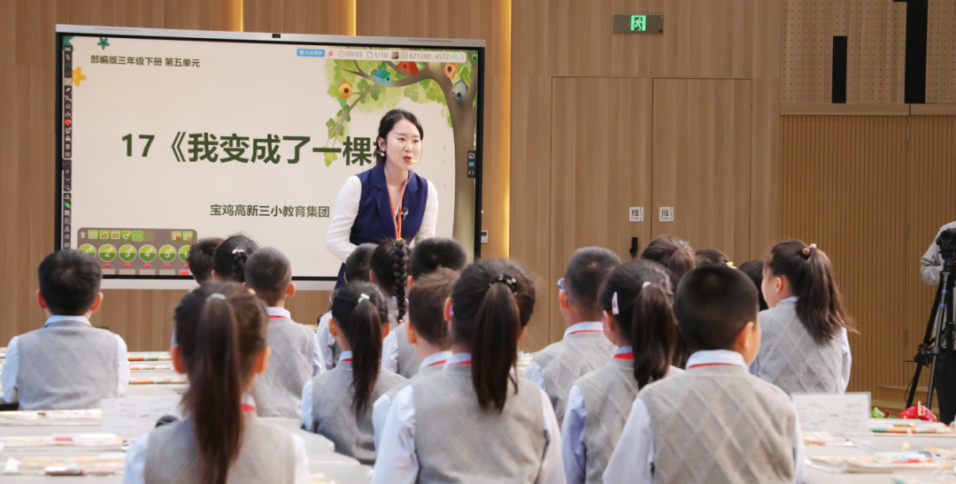 來(lái)自寶雞高新三小教育集團(tuán)的郗樂(lè)樂(lè)老師和高璐老師為大家?guī)?lái)兩節(jié)展示課:二年級(jí)的《青蛙賣泥塘》和三年級(jí)的《我變成了一棵樹(shù)》。通過(guò)這兩節(jié)課為大家呈現(xiàn)心智語(yǔ)文最真實(shí)的課堂的模樣。