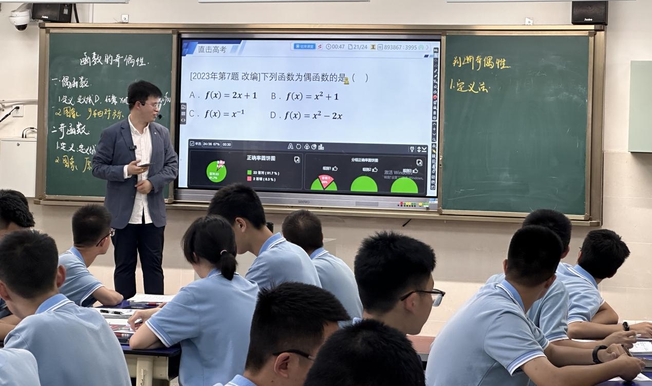 四川省成都市中和職業(yè)中學(xué)的黃宇老師獨(dú)具匠心,巧妙地運(yùn)用了數(shù)字化教學(xué)工具,例如“即問即答、隨機(jī)挑人、任務(wù)推送,智學(xué)評(píng)分等”,以《簡(jiǎn)單幾何體旋轉(zhuǎn)體的結(jié)構(gòu)特征》為主題,展現(xiàn)了一堂信息技術(shù)與課堂教學(xué)深度融合的高品質(zhì)課程。與此同時(shí),現(xiàn)場(chǎng)與線上的教育同仁們同步展開觀課與議課活動(dòng),對(duì)本堂課的教學(xué)過程進(jìn)行評(píng)價(jià),并提出各自的肯定和建議。