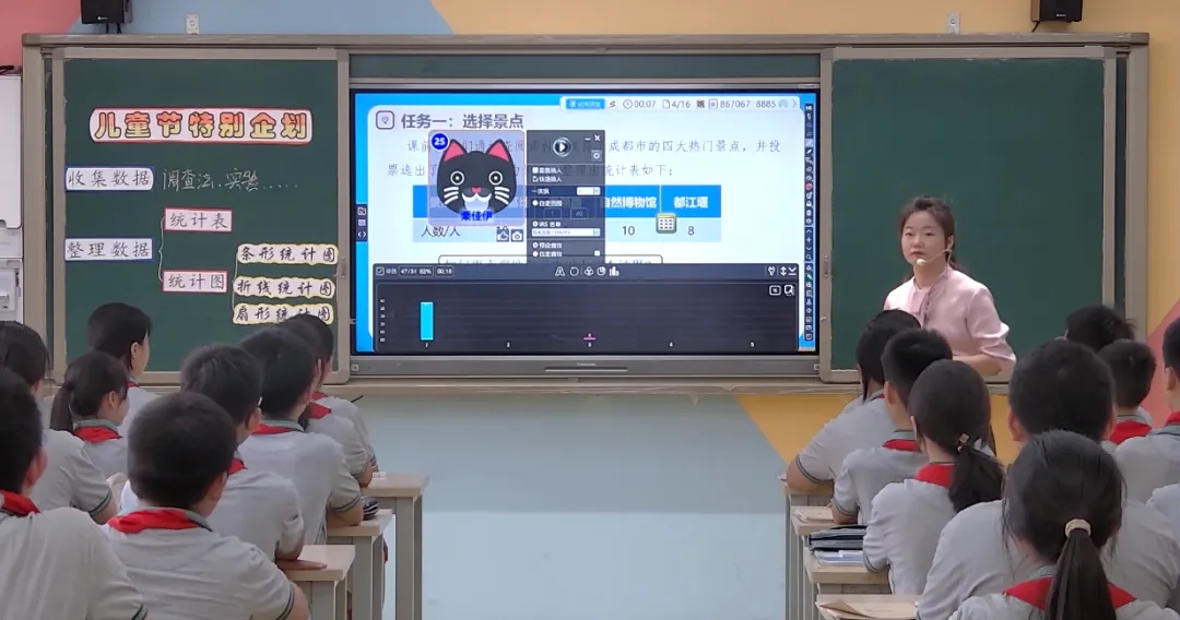 六年級(jí)數(shù)學(xué)組姚麗老師帶來數(shù)學(xué)復(fù)習(xí)課《統(tǒng)計(jì)圖》。姚老師根據(jù)學(xué)生的知識(shí)掌握情況以及大單元情境的創(chuàng)設(shè),結(jié)合HiTeach智慧教學(xué)系統(tǒng)以及小組合作,在課中根據(jù)課堂實(shí)時(shí)數(shù)據(jù)精準(zhǔn)調(diào)控課堂,及時(shí)反饋數(shù)據(jù)做到教學(xué)評(píng)一致性,引導(dǎo)學(xué)生構(gòu)建統(tǒng)計(jì)圖的知識(shí)網(wǎng)絡(luò),使復(fù)習(xí)的知識(shí)結(jié)構(gòu)化。