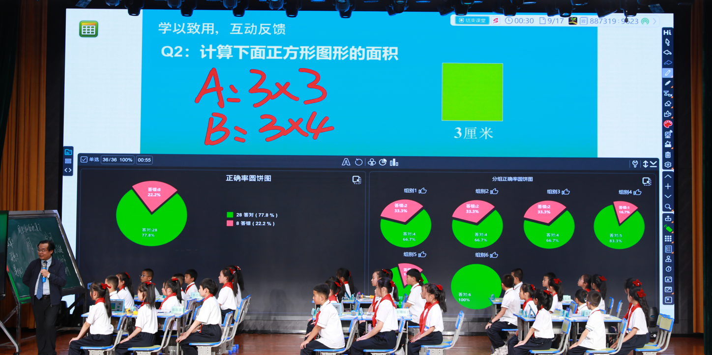 21日下午,醍摩豆智慧教育研究院秘書長(zhǎng)劉彬帶來(lái)本次會(huì)議大會(huì)展示課三年級(jí)數(shù)學(xué)《周長(zhǎng)和面積的整理復(fù)習(xí)》,劉彬教授運(yùn)用HiTeach 5智慧教學(xué)系統(tǒng)為課堂賦能,精準(zhǔn)教學(xué),通過(guò)小組協(xié)作、互評(píng)等工具搭建了以生為本的高效課堂,展示了“教-學(xué)-評(píng)”一體化課堂教學(xué)模式。