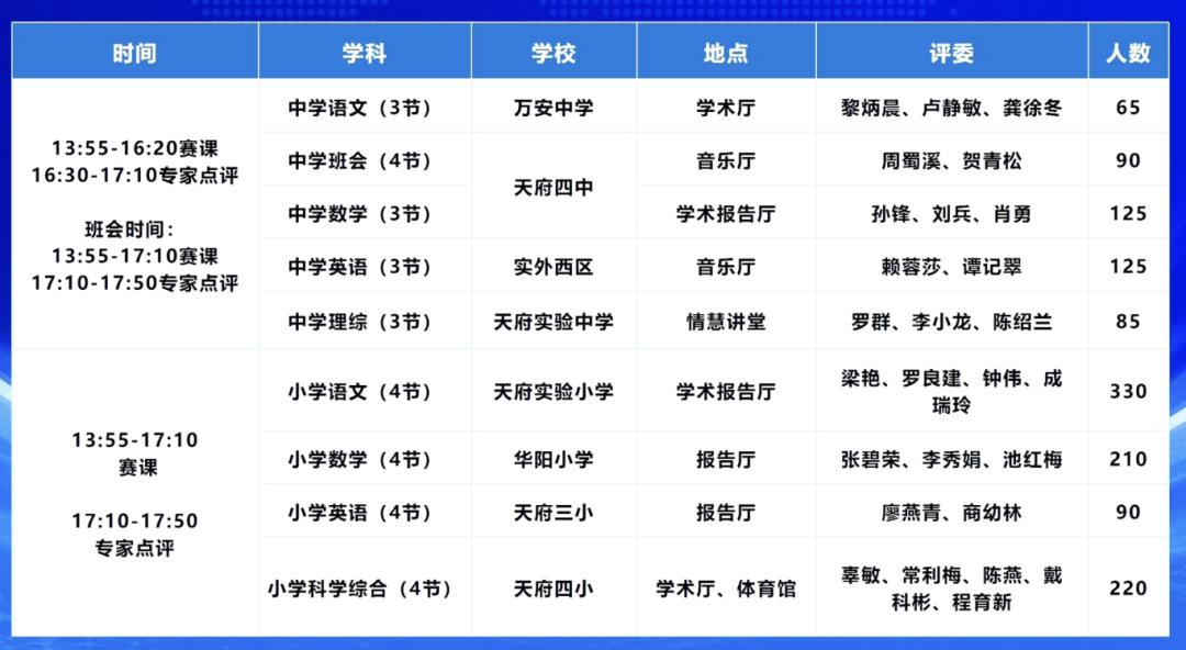 下午,萬(wàn)安中學(xué)、天府四中、實(shí)外西區(qū)、天府實(shí)驗(yàn)中學(xué)、天府實(shí)驗(yàn)小學(xué)、華陽(yáng)小學(xué)、天府三小、天府四小八個(gè)分會(huì)場(chǎng)同步開(kāi)展賽課,來(lái)自天府四中教育集團(tuán)的32位老師同臺(tái)競(jìng)技,展示教師風(fēng)采。