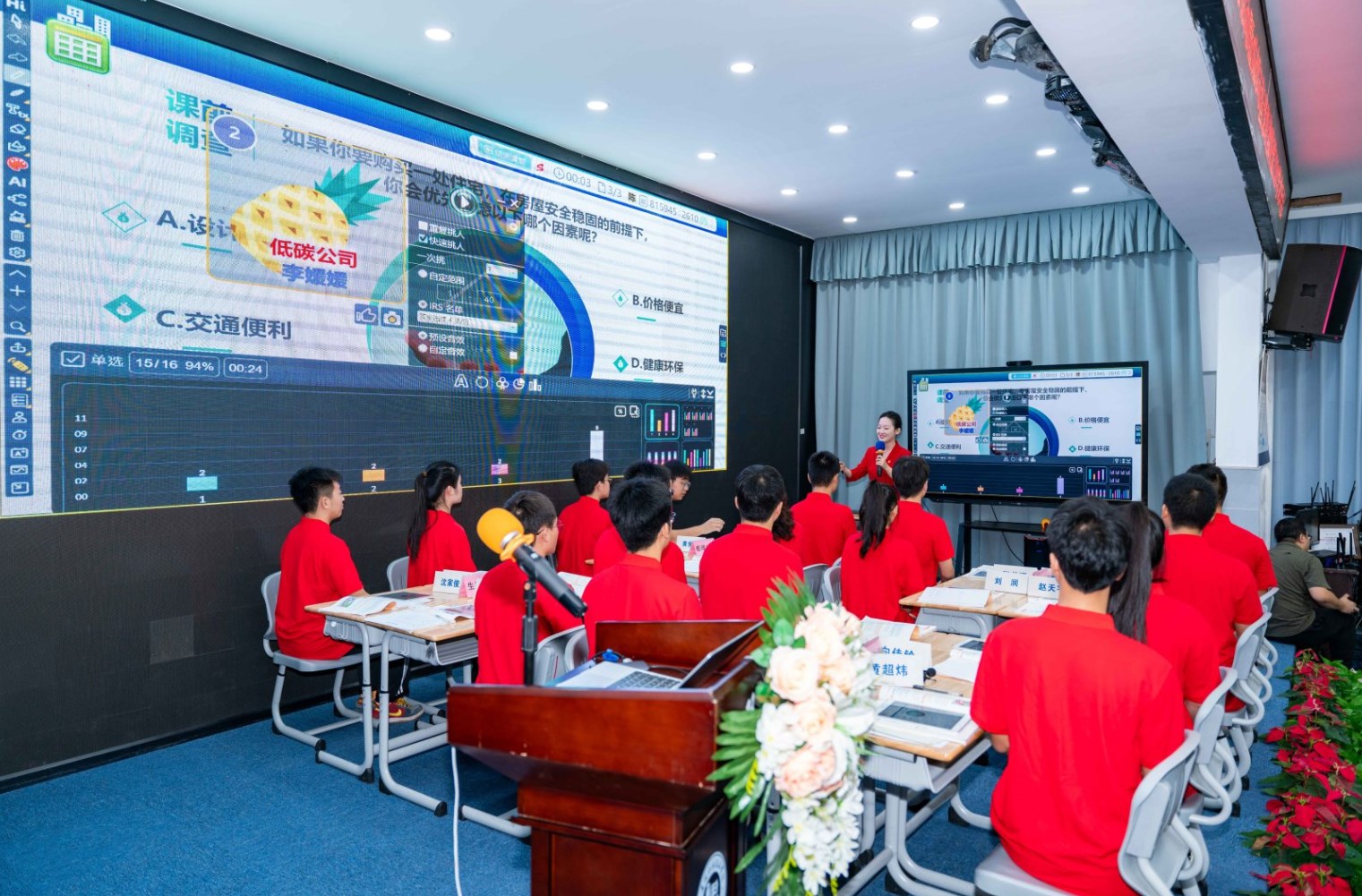 活動(dòng)以線上與線下相結(jié)合的方式展開(kāi),內(nèi)容豐富,聚焦“數(shù)字賦能職業(yè)教育高效課堂 ”,既有重量級(jí)教育家的深度報(bào)告與圓桌論壇,同時(shí)在主會(huì)場(chǎng)以及各分學(xué)科領(lǐng)域內(nèi),還設(shè)有豐富的課堂展示與深入的交流環(huán)節(jié)。當(dāng)代教育名家馮恩洪,《中國(guó)教育學(xué)刊》雜志社編委會(huì)副主任、編審馬憲平,成都市教育科學(xué)研究院副院長(zhǎng)譚文麗,雙流區(qū)教育局黨組成員、副局長(zhǎng)黃曦,成都師范學(xué)院教授唐瓷,重慶市江南職業(yè)學(xué)校主任陳衛(wèi),醍摩豆智慧教育研究院秘書長(zhǎng)劉彬等近400位教育專家、校長(zhǎng)、教研員、骨干教師齊聚一堂,共同探討數(shù)字化工具在教學(xué)教研中的深入應(yīng)用與實(shí)踐。 開(kāi)幕式環(huán)節(jié)由四川省雙流建設(shè)職業(yè)技術(shù)學(xué)校黨支部書記、校長(zhǎng)周小研主持。 雙流區(qū)教育局黨組成員、副局長(zhǎng)黃曦在致辭中強(qiáng)調(diào),當(dāng)前教育領(lǐng)域正經(jīng)歷著前所未有的深刻變革,數(shù)字化已成為推動(dòng)教育創(chuàng)新發(fā)展的重要力量。黃局長(zhǎng)指出,雙流區(qū)將把教育數(shù)字化作為開(kāi)辟區(qū)域教育發(fā)展新賽道、塑造教育發(fā)展新優(yōu)勢(shì)的重要突破口,以“智慧教育”為引領(lǐng),推動(dòng)職業(yè)教育的高質(zhì)量發(fā)展。 成都市教育科學(xué)研究院副院長(zhǎng)譚文麗在致辭表示,數(shù)字化為職業(yè)教育的發(fā)展提供了廣闊的空間和無(wú)限的可能。譚院長(zhǎng)鼓勵(lì)大家積極探索、勇于創(chuàng)新,共同推動(dòng)職業(yè)教育數(shù)字化的深入發(fā)展,為培養(yǎng)更多高素質(zhì)、高技能的人才貢獻(xiàn)力量。 《中國(guó)教育學(xué)刊》雜志社編委會(huì)副主任、編審馬憲平在線發(fā)表了精彩致辭,為與會(huì)者帶來(lái)了深刻的思考和啟迪,進(jìn)一步激發(fā)了大家對(duì)職業(yè)教育數(shù)字化的熱情和信心。馬主任強(qiáng)調(diào),通過(guò)本次學(xué)術(shù)年會(huì),應(yīng)搭建交流研討的平臺(tái),深入探討數(shù)字賦能職業(yè)教育的新理念、新思路、新經(jīng)驗(yàn),促進(jìn)信息共享、思想碰撞、經(jīng)驗(yàn)交流,共同推動(dòng)職業(yè)教育數(shù)字化轉(zhuǎn)型的縱深發(fā)展。 活動(dòng)正式環(huán)節(jié)由成都市教育科學(xué)研究院職成與高等教育研究所的副所長(zhǎng)萬(wàn)朝麗女士主持。 四川省雙流建設(shè)職業(yè)技術(shù)學(xué)校副校長(zhǎng)陳嬙為大會(huì)展示了一場(chǎng)精彩的智慧課例,題為《攜手共創(chuàng),綠色城市——邁向可持續(xù)發(fā)展的未來(lái)》。陳老師熟練運(yùn)用帶有生成式AI技術(shù)的HiTeach智慧教學(xué)系統(tǒng),通過(guò)互評(píng)功能與GAI心智圖的巧妙結(jié)合,為參會(huì)嘉賓呈現(xiàn)了一堂充滿活力、AI驅(qū)動(dòng)的精彩課堂。這一創(chuàng)新教學(xué)模式不僅讓與會(huì)者親身體驗(yàn)了數(shù)字工具在教育領(lǐng)域的實(shí)踐魅力,還彰顯了四川省雙流建設(shè)職業(yè)技術(shù)學(xué)校在推動(dòng)教育信息化、打造智慧教育生態(tài)方面的遠(yuǎn)見(jiàn)卓識(shí)與顯著成效,為參會(huì)者提供了深刻的思考與寶貴的參考。