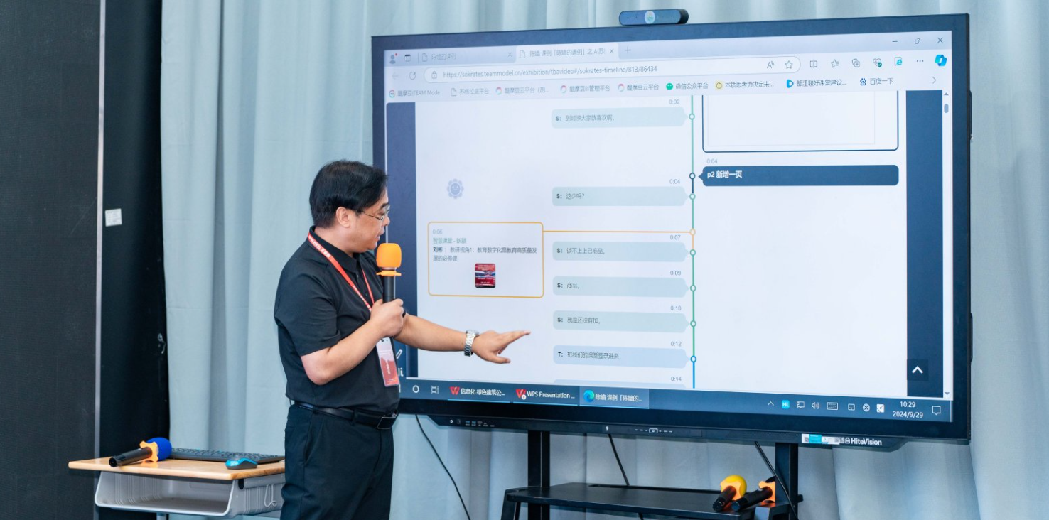 AI文句分析 隨后,重慶市江南職業(yè)學(xué)校專家陳衛(wèi)紅精準(zhǔn)點(diǎn)評(píng)了本節(jié)智慧課例,醍摩豆智慧教育研究院秘書長(zhǎng)劉彬借助數(shù)字化蘇格拉底平臺(tái),向與會(huì)人員展示了本堂課的圖片、文字、語(yǔ)音等數(shù)據(jù)切點(diǎn)標(biāo)記。同時(shí),他還呈現(xiàn)了AI技術(shù)對(duì)本堂課在科技互動(dòng)、教學(xué)方法應(yīng)用、學(xué)習(xí)參與度以及教學(xué)行為等方面的數(shù)據(jù)特征進(jìn)行深入分析后的評(píng)價(jià)與建議。基于這些數(shù)據(jù)與分析結(jié)果,以新課標(biāo)和教學(xué)評(píng)一致性為框架,對(duì)該課程進(jìn)行了詳盡的剖析,并為在場(chǎng)的教師們提供了極具價(jià)值的教學(xué)指導(dǎo)建議。