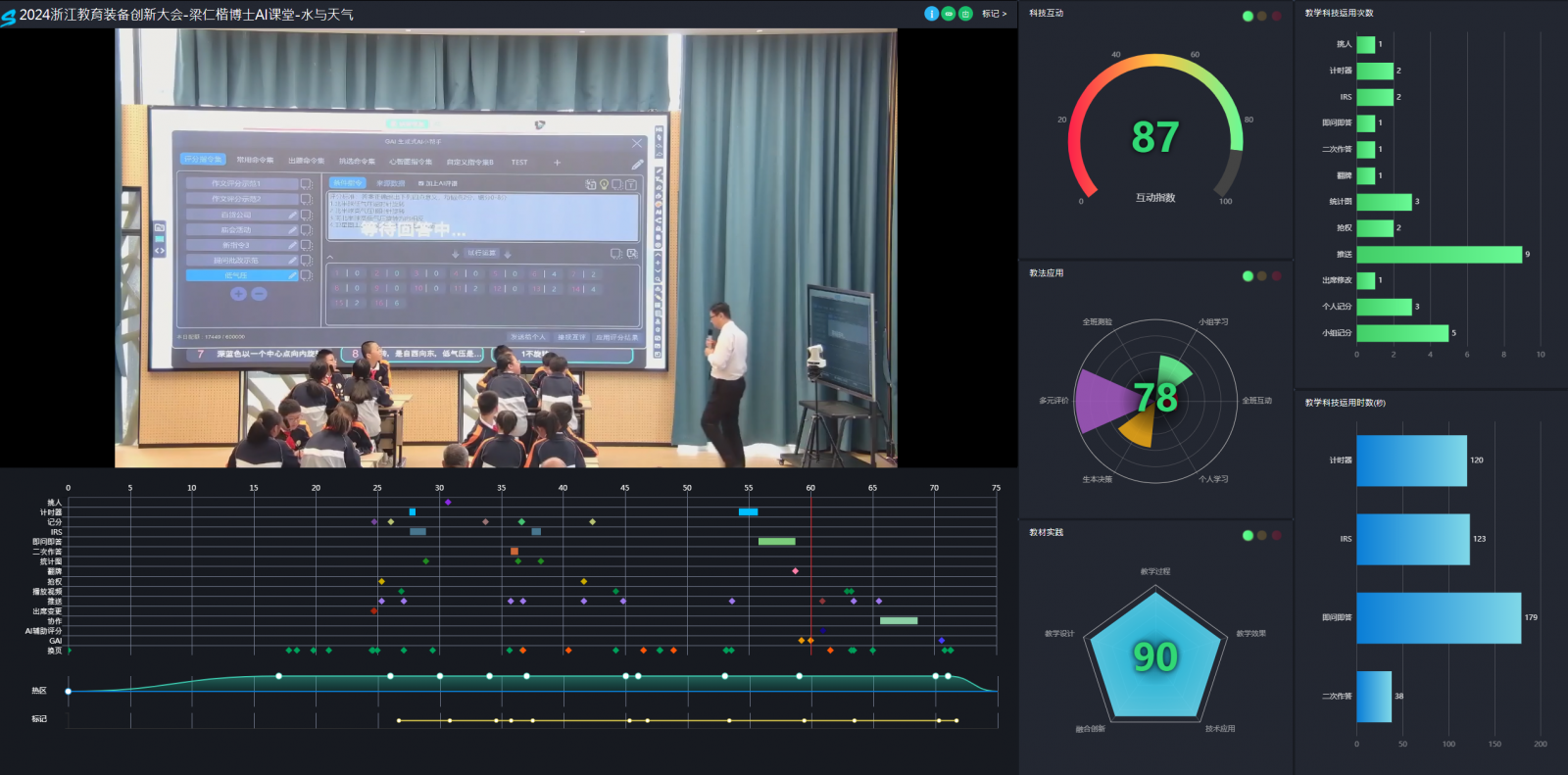 11日下午,由醍摩豆協(xié)辦的2024浙江省教育裝備創(chuàng)新大會分論壇在杜甫中學小報告廳如期舉行,分論壇以“教師+AI 輔助教學中角色轉(zhuǎn)變”為主題,通過智慧課堂、智慧研修、專家報告、高峰對話等環(huán)節(jié)探索、提煉新技術(shù)(裝備)、新教法、新教材TPC三者深度融合的AI智能課堂模式,落實課程教學改革深化行動方案。活動由醍摩豆智慧教育研究院秘書長劉彬教授主持。 浙江省教育技術(shù)中心的副主任於曉東發(fā)表了領(lǐng)導致辭,他深刻強調(diào),人工智能作為科技革命與產(chǎn)業(yè)變革的核心驅(qū)動力,正日益凸顯其在推動教育轉(zhuǎn)型與學習方式革新中的關(guān)鍵作用。本次分論壇,作為教育裝備創(chuàng)新大會課堂展演的一個亮點環(huán)節(jié),其核心目的在于展示數(shù)字化教育領(lǐng)域的豐碩成果與實踐智慧,積極探索并實踐“教師-學生-智能設(shè)備”三者間協(xié)同互動的新模式與新路徑。最后,預祝本次活動取得圓滿成功。 醍摩豆智慧教育研究院院長吳權(quán)威教授向親臨現(xiàn)場的每一位嘉賓致以熱烈的歡迎與誠摯的感謝,他著重指出,生成式AI在當今課堂教學中扮演著舉足輕重的角色,對于作為開發(fā)者的我們而言,創(chuàng)新產(chǎn)品始終是我們的核心追求。歷經(jīng)25年的深耕細作,醍摩豆智慧教學系統(tǒng)已然成為推動數(shù)字化教學變革不可或缺的重要工具,并希望每一位參會者都能在本次會議中收獲滿滿,深切體驗到數(shù)字工具所帶來的便捷與高效。 兩岸智慧好課堂邀請賽冠軍導師梁仁楷博士帶來AI課堂展示:七年級科學《水與天氣》,梁老師熟練運用帶有生成式AI技術(shù)的HiTeach智慧教學系統(tǒng),通過全班協(xié)作與GAI心智圖,即問即答與智慧評分的巧妙結(jié)合,為參會嘉賓呈現(xiàn)了一堂充滿活力、人機協(xié)同的精彩課堂。這一創(chuàng)新教學模式不僅讓與會者親身體驗了數(shù)字工具在教育領(lǐng)域的實踐魅力,為參會者提供了深刻的思考與寶貴的參考。 醍摩豆智慧教育研究院秘書長劉彬借助數(shù)字化蘇格拉底平臺,向與會人員展示了本堂課的圖片、文字、語音等數(shù)據(jù)切點標記。同時,他還呈現(xiàn)了AI技術(shù)對本堂課在科技互動、教學方法應(yīng)用、學習參與度以及教學行為等方面的數(shù)據(jù)特征。 安徽省電化教育館的館長閆明圣以“精彩、創(chuàng)新、賦能”三個精煉詞匯,對本堂課給予了高度評價。他特別強調(diào),梁老師巧妙地融合人工智能技術(shù)于教學之中,無論是在課程設(shè)計的匠心獨運、教學目標的精準定位、教學過程的深度互動,還是在教學效果的顯著提升上,均展現(xiàn)出了獨到的見解。梁老師成功地將核心知識點編織進生動有趣的互動學習環(huán)節(jié),不僅讓課堂充滿了特色與活力,更為廣大教育工作者提供了一個極具參考價值、易于借鑒且便于復制推廣的優(yōu)質(zhì)教學范例。 醍摩豆智慧教育研究院院長吳權(quán)威教授為與會者帶來了一場題為《HiTeach生成式AI賦能之數(shù)字化教學方法策略》的精彩專題報告。報告中,吳教授深刻剖析了生成式AI如何為課堂教學注入前所未有的活力,更通過一系列生動鮮活的互動研討與體驗環(huán)節(jié),讓參會嘉賓親身體驗到了這一技術(shù)革新帶來的震撼與驚喜。 緊接著,來自杭州濮家小學教育集團的李慶力校長,以及成都市龍泉驛區(qū)教育局的龍榮華科長,分別就《數(shù)智賦能:作業(yè)與課堂深度融合的校本實踐探索》與《AI引領(lǐng)課堂教學與教研的“龍泉模式”經(jīng)驗分享》兩大主題,發(fā)表了專題報告。兩位教育領(lǐng)域的專家深入剖析并分享了各自在智慧學校與智慧學區(qū)建設(shè)中,探索數(shù)字化教學改革的具體實踐路徑及一系列成功的案例。他們的分享不僅展現(xiàn)了數(shù)字化技術(shù)在教育領(lǐng)域的前沿應(yīng)用,也為同行們提供了寶貴的實踐經(jīng)驗和啟示。 最后,舉行了隆重的授牌儀式,10所學校加入“醍摩豆AI智慧學校”的大家庭,這不僅是對醍摩豆在智慧課堂教育領(lǐng)域應(yīng)用實踐的深切肯定,更是廣大用戶對醍摩豆品牌深厚信賴與堅定支持的彰顯。展望未來,醍摩豆將不忘初心,砥礪前行,以更加精誠的服務(wù)態(tài)度,持續(xù)賦能更多學校的教育數(shù)字化轉(zhuǎn)型之路,共繪智慧教育新藍圖。