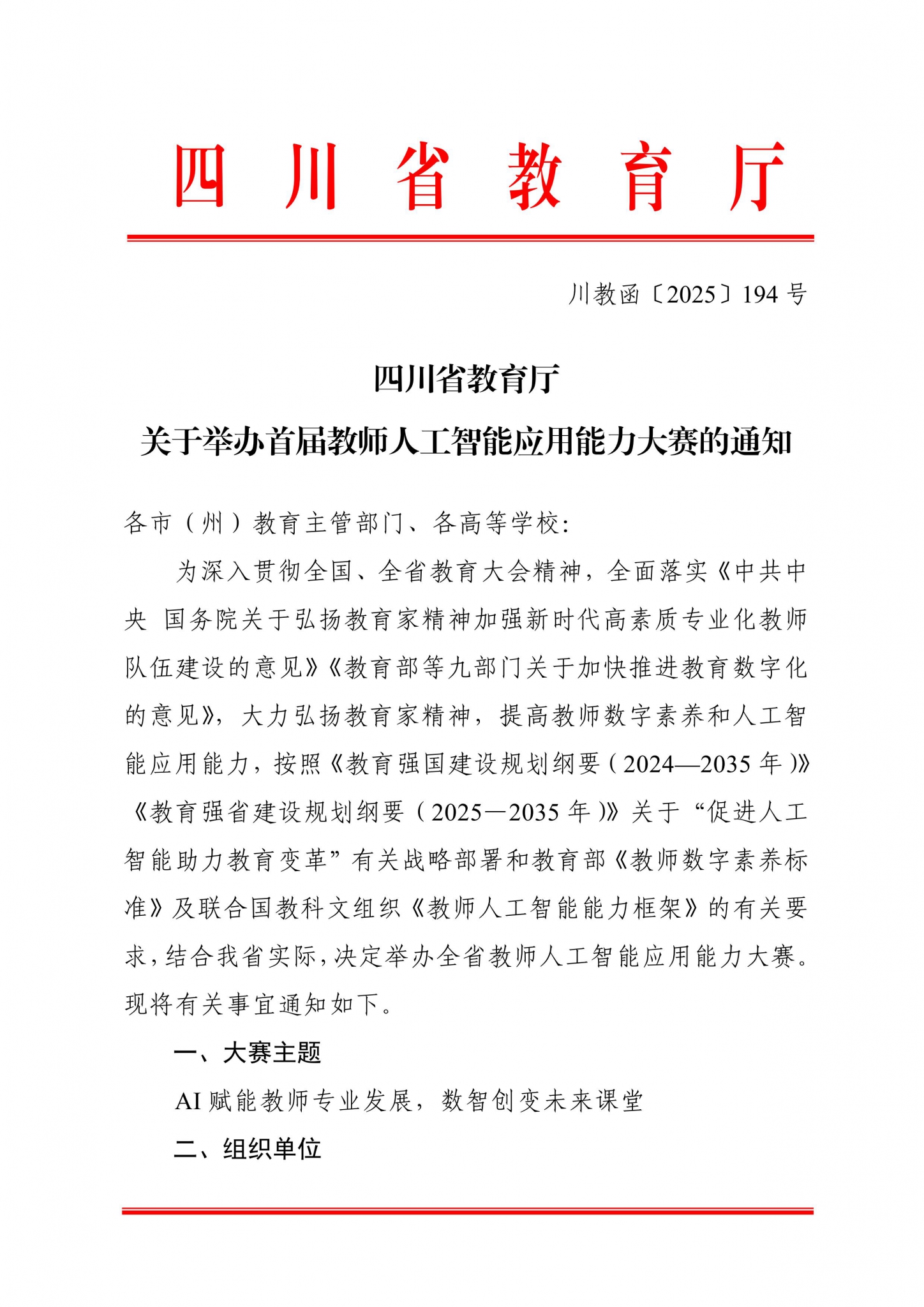 日前,四川省教育廳正式發(fā)布了關(guān)于舉辦首屆教師人工智能應(yīng)用能力大賽的通知。醍摩豆作為本次大賽服務(wù)支持單位將為大賽提供“數(shù)字化教學(xué)工具”“AI免費(fèi)使用授權(quán)”“個(gè)性化指導(dǎo)服務(wù)”。