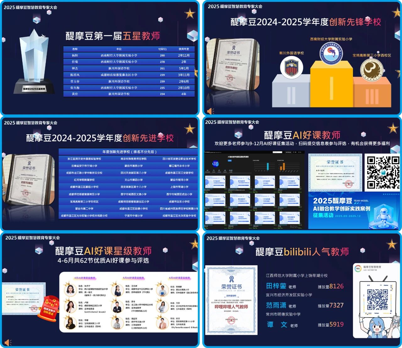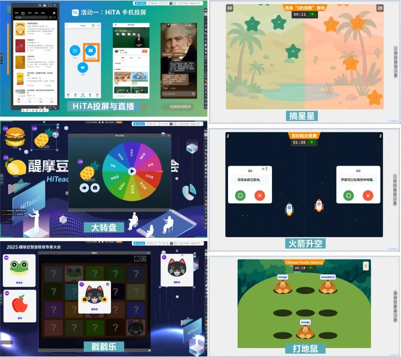 在主題分享環(huán)節(jié),醍摩豆智慧教育研究院院長吳權威帶來→《HiTeach 5s新功能分享》,他教授圍繞“連接”這一核心理念,逐一展示了AI如何巧妙嵌入教科書;AI自動批改作業(yè)(主觀題)的精準高效,以及云端心智圖如何助力學生構建知識框架的清晰脈絡。此外,教材、課程資源均實現(xiàn)了無縫連接,讓教學過程變得更強大與便捷。 在“醍摩豆咖啡館”互動環(huán)節(jié)中,醍摩豆智慧教育研究院劉彬秘書長帶來→《2025醍摩豆專家大會互動交流》專題分享,他妙用HiTeach教學工具,匯聚大家的心聲,再借助AI,對收集到的內容進行智能分類與深度總結提煉,最終生成了一幅條理清晰、內涵豐富的心智圖,為醍摩豆產(chǎn)品的持續(xù)優(yōu)化與升級提供了寶貴的參考與啟示。 隨后,大會總結了2024-2025年度表現(xiàn)優(yōu)異的智慧學校、智慧老師,并進行線上頒獎及表彰。 寶雞高新三小教育集團李琳校長、四川雙流建設職業(yè)技術學校周小研校長,西南財經(jīng)大學附屬實驗小學任菊老師、成都市新都區(qū)新川外國語學校鐘杰老師、云南省蒙自市惠民小學的楊雅麟老師、成都市龍江路小學中糧祥云分校賈冬老師、成都市站東小學??驴评蠋煼謩e從智慧學校的探索應用和課堂教學的實踐經(jīng)驗進行發(fā)言分享。 本次會議還通過線上演示、抽獎互動展示了5s版本的趣味新功能:HiTA 5投屏與直播;課堂教學小游戲——打地鼠、摘星星、火箭升空;大轉盤和戳戳樂,這些功能不僅適配于無學生終端的智慧教室環(huán)境,還讓這場云端盛會變得生動活潑、別開生面。 最后,醍摩豆智慧教育研究院理事長陳權作總結發(fā)言。他向在暑期仍線上參會的各位老師、專家及校長們,表達了最誠摯的歡迎與感謝。隨后,對本次會議進行了全面而精煉的總結,他強調,在未來的探索征途中,期望各學校能與醍摩豆并肩同行,以AI為翼,以數(shù)智為帆,共同開創(chuàng)一個更加智慧、更加輝煌的教育新未來。 本次專家大會與新品分享會的成功舉辦,為醍摩豆的發(fā)展注入了新的活力與靈感。未來,醍摩豆將堅定不移地秉持“用戶至上”的核心理念,將用戶的每一份期待與需求作為創(chuàng)新的源動力,不斷精進產(chǎn)品技術,優(yōu)化服務流程,力求在每一個細節(jié)上都能超越用戶的期望,為用戶創(chuàng)造更加卓越、貼心且個性化的產(chǎn)品和服務體驗,攜手共創(chuàng)智慧教育的美好未來。