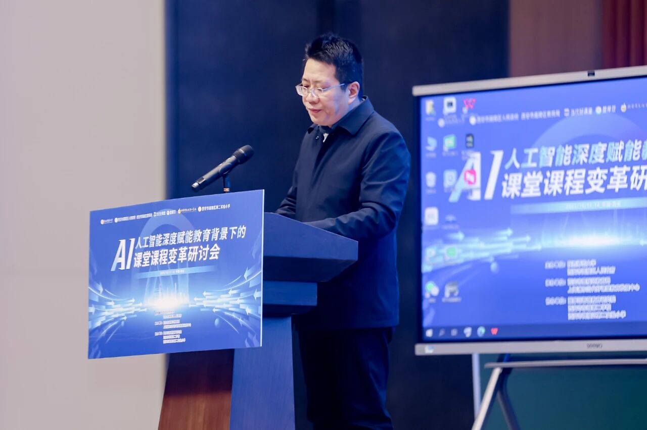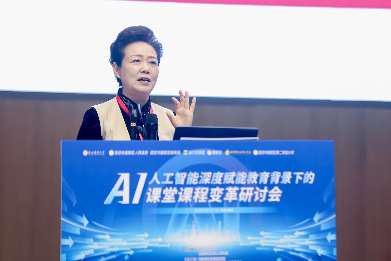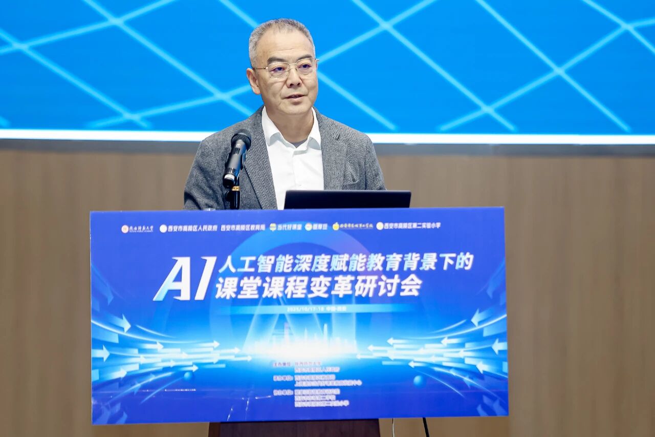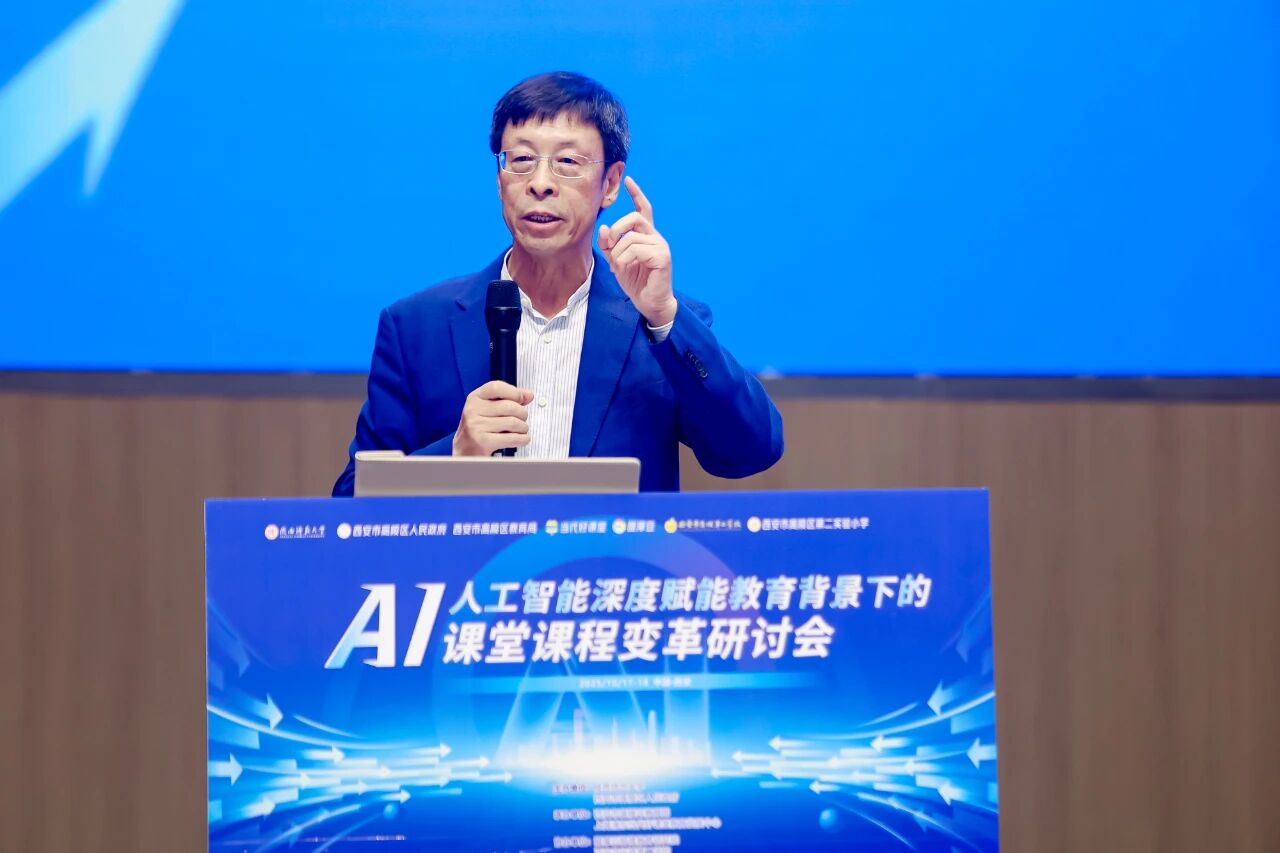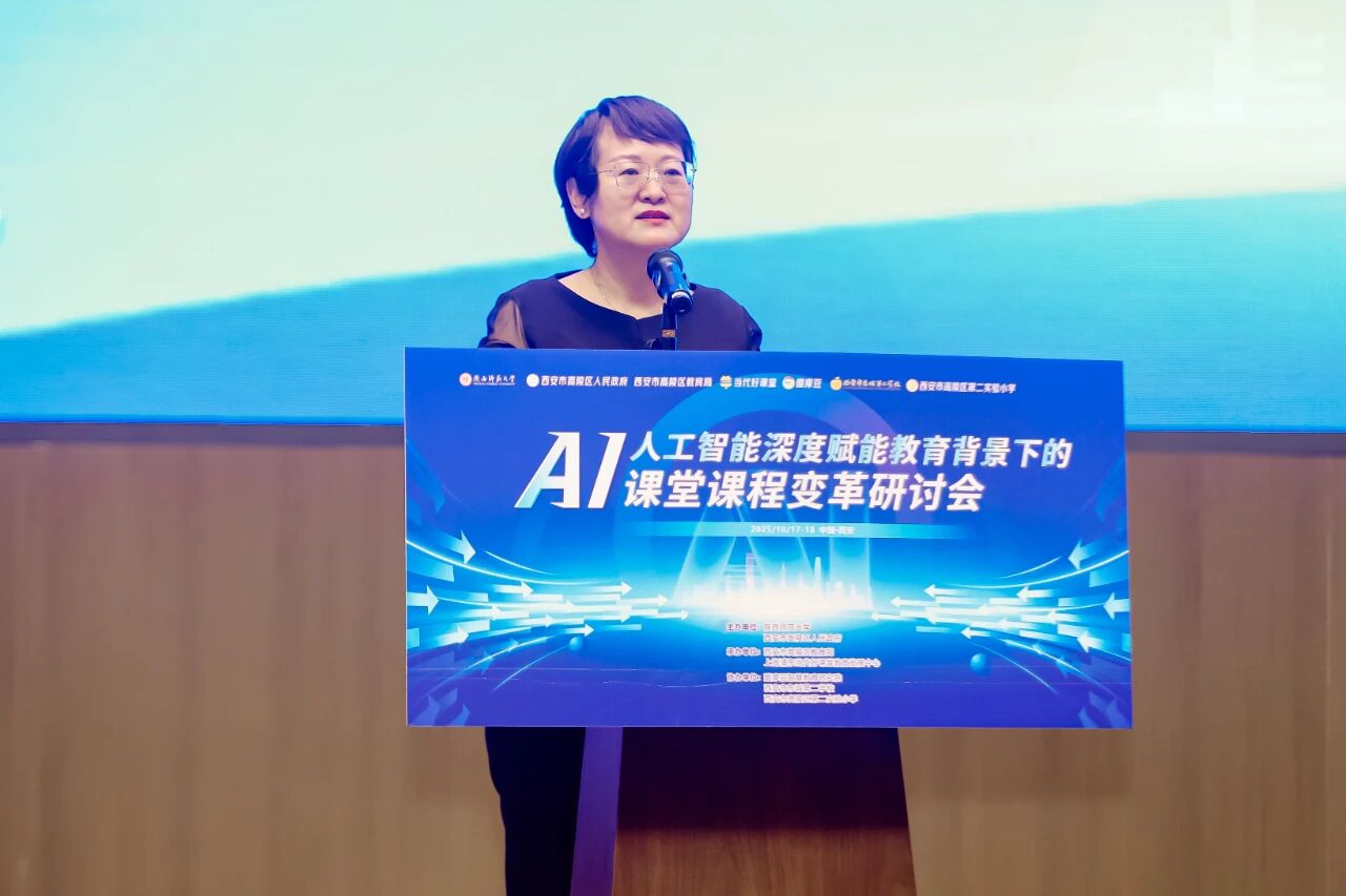 秋來風(fēng)景異,在這兼具收獲與憧憬的金秋十月,17-18日“人工智能深度賦能教育背景下的課堂課程變革”研討會(huì)在高陵區(qū)召開。本次研討會(huì)由陜西師范大學(xué)、西安市高陵區(qū)人民政府主辦,高陵區(qū)教育局、上海浦東當(dāng)代好課堂教育發(fā)展中心承辦,醍摩豆智慧教育研究院協(xié)辦。 中國教育學(xué)會(huì)第九屆理事會(huì)副監(jiān)事長楊念魯;中國教育學(xué)會(huì)副會(huì)長,北京市豐臺(tái)區(qū)承澤小學(xué)黨支部書記、校長王歡;北京教育學(xué)院原黨委書記,《中國教育學(xué)刊》編委會(huì)副主任、編審(教授)馬憲平;北京教育學(xué)院原副院長、北京市特級(jí)教師協(xié)會(huì)會(huì)長湯豐林;當(dāng)代教育名家馮恩洪先生;醍摩豆智慧教育研究院秘書長劉彬等教育專家以及來自陜西、西安、青海、寧夏、江蘇及延安、寶雞、銅川等省內(nèi)外的相關(guān)領(lǐng)導(dǎo),中小學(xué)校長、教研組長和教師代表700余人參加了本次研討。 本次會(huì)議由《中國教育學(xué)刊》編委會(huì)副主任、編審馬憲平主持。 《中國教育學(xué)刊》編委會(huì)副主任、編審馬憲平 陜西師范大學(xué)黨委常委、副校長任曉偉與高陵區(qū)人民政府副區(qū)長薛霞熱情致辭。他們指出,本次研討會(huì)是高陵區(qū)落實(shí)國家、省市教育工作會(huì)議精神,深入貫徹國家教育數(shù)字化戰(zhàn)略部署及發(fā)展新質(zhì)生產(chǎn)力相關(guān)要求的務(wù)實(shí)行動(dòng),是高陵區(qū)與陜西師范大學(xué)深入推進(jìn)校地融合發(fā)展的生動(dòng)實(shí)踐,也是持之以恒推進(jìn)高陵教育“1+6”教育體系,著力打造“優(yōu)學(xué)高陵”品牌,加快建設(shè)區(qū)域高質(zhì)量教育體系這的重大舉措 陜西師范大學(xué)黨委常委、副校長 任曉偉
