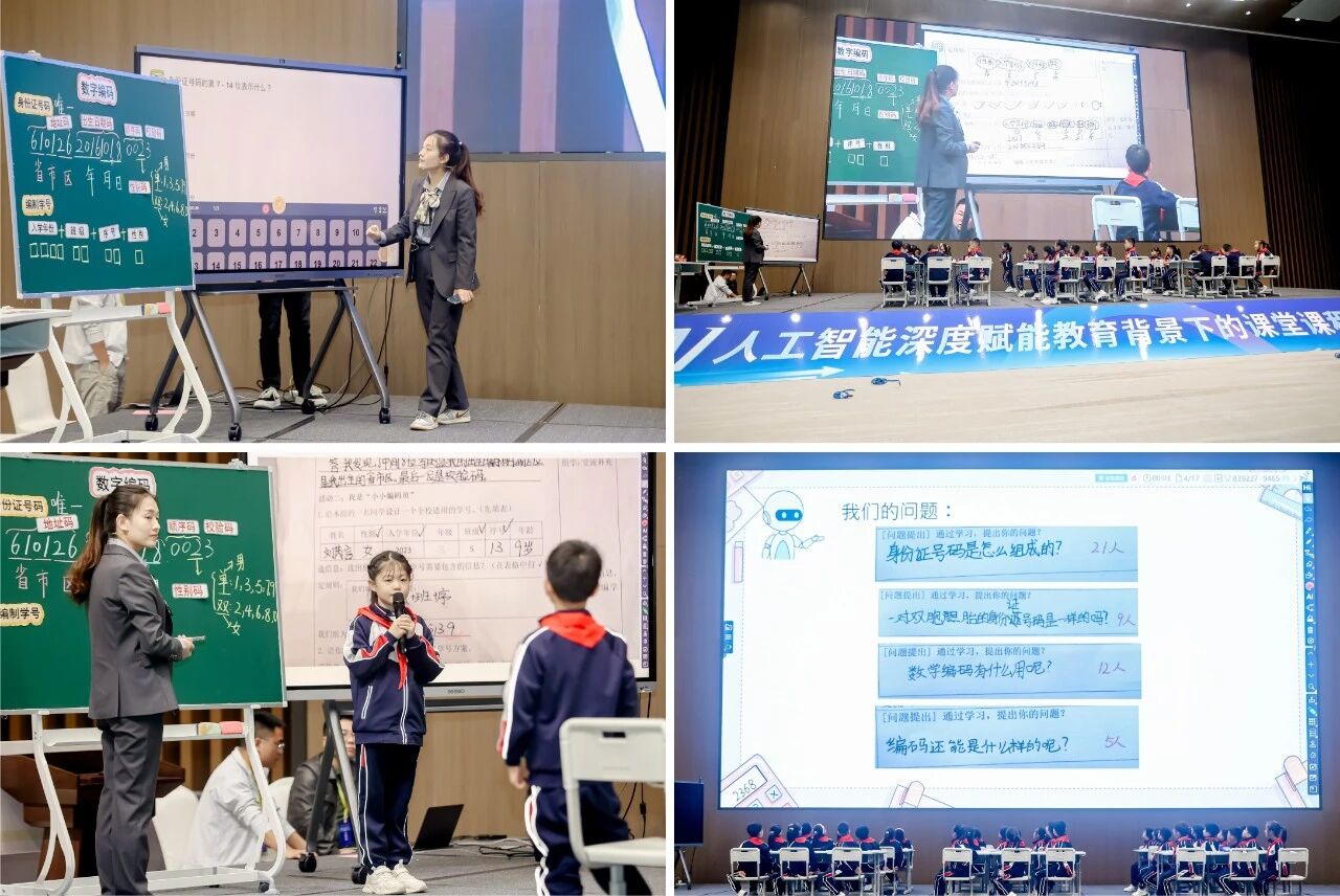 西安市高陵區(qū)第二實(shí)驗(yàn)小學(xué)周美萍老師、西安市東城第二學(xué)校張浩楠老師分別帶來精彩的三年級(jí)數(shù)學(xué)《數(shù)字編碼》和九年級(jí)語文《故鄉(xiāng)》。兩位老師借助數(shù)字技術(shù)精準(zhǔn)分析學(xué)情,把握學(xué)生認(rèn)知難點(diǎn),真正實(shí)現(xiàn)“以學(xué)定教”。課堂中,即問即答、作品觀摩的靈活運(yùn)用不僅顯著提升了課堂效率,更優(yōu)化了教學(xué)策略,為教師從“傳統(tǒng)教學(xué)”向“智能教學(xué)”轉(zhuǎn)型提供了實(shí)踐參考。 西安市高陵區(qū)第二實(shí)驗(yàn)小學(xué)周美萍-三年級(jí)數(shù)學(xué)《數(shù)字編碼》