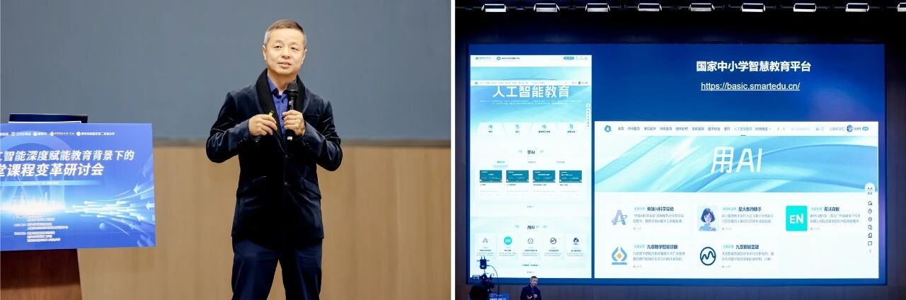 課堂展示結(jié)束后,醍摩豆智慧教育研究院秘書長劉彬教授巧妙借助AI課堂分析平臺(tái)為現(xiàn)場與會(huì)人員全方位展示了本堂課清晰的課堂總結(jié)分析,AI課堂分析融合了馮恩洪校長“好課堂”文化三要素:問題、合作、合適,能幫助老師快速提煉教學(xué)目標(biāo)、教學(xué)方法、學(xué)生表現(xiàn)、教學(xué)優(yōu)缺點(diǎn),實(shí)現(xiàn)了從經(jīng)驗(yàn)教研到數(shù)據(jù)教研的范式轉(zhuǎn)換。 北京教育學(xué)院原副院長、北京市特級(jí)教師協(xié)會(huì)會(huì)長湯豐林對兩節(jié)課高度點(diǎn)評。他指出教師角色需轉(zhuǎn)向“育人”,重點(diǎn)培養(yǎng)批判性思維與創(chuàng)造力,同時(shí)掌握AI工具應(yīng)用能力,警惕技術(shù)依賴。 主旨報(bào)告環(huán)節(jié),中國教育學(xué)會(huì)第九屆理事會(huì)副監(jiān)事長楊念魯先生提出了一個(gè)引人深思的觀點(diǎn):人工智能不僅是教育的挑戰(zhàn),更是教育躍升的契機(jī)。他指出,通過教師轉(zhuǎn)型、學(xué)生賦能和制度創(chuàng)新的三管齊下,我們完全能夠?qū)I挑戰(zhàn)轉(zhuǎn)化為教育質(zhì)的飛躍。AI技術(shù)正在改變傳統(tǒng)的教育模式。過去以知識(shí)傳授為核心的學(xué)習(xí)方式正在被顛覆,傳統(tǒng)的課堂教學(xué)和以教材為藍(lán)本的學(xué)習(xí)評價(jià)方式也面臨革新。 北京市豐臺(tái)區(qū)承澤小學(xué)校長,原史家教育集團(tuán)總校長王歡強(qiáng)調(diào),在AI技術(shù)迅猛發(fā)展的教育背景下,要積極構(gòu)建有溫度的教育。她指出,AI雖能提升教育效率,但教育的核心始終是人的情感與成長。學(xué)校應(yīng)借助AI實(shí)現(xiàn)個(gè)性化教學(xué),同時(shí)注重師生間的情感交流,營造充滿愛與關(guān)懷的教育氛圍,讓每個(gè)孩子都能在溫暖的環(huán)境中茁壯成長。 作為在人工智能應(yīng)用教學(xué)一線的探索者,四川天府第四中學(xué)教育集團(tuán)黨委書記、總校長張顯國,西安市浐灞實(shí)驗(yàn)小學(xué)黨支部書記、校長宋鶯,陜西師范大學(xué)實(shí)驗(yàn)小學(xué)副校長寇擁軍分別帶來題為《以戰(zhàn)略思維開辟AI賦能教育教學(xué)新路徑》《以技術(shù)賦能教育全鏈條——基于AI技術(shù)的教學(xué)研管評實(shí)踐與探索》《AI賦能中小學(xué)教育變革與數(shù)字化資源的開發(fā)與運(yùn)用》的經(jīng)驗(yàn)分享。 四川天府第四中學(xué)教育集團(tuán)黨委書記、總校長張顯國