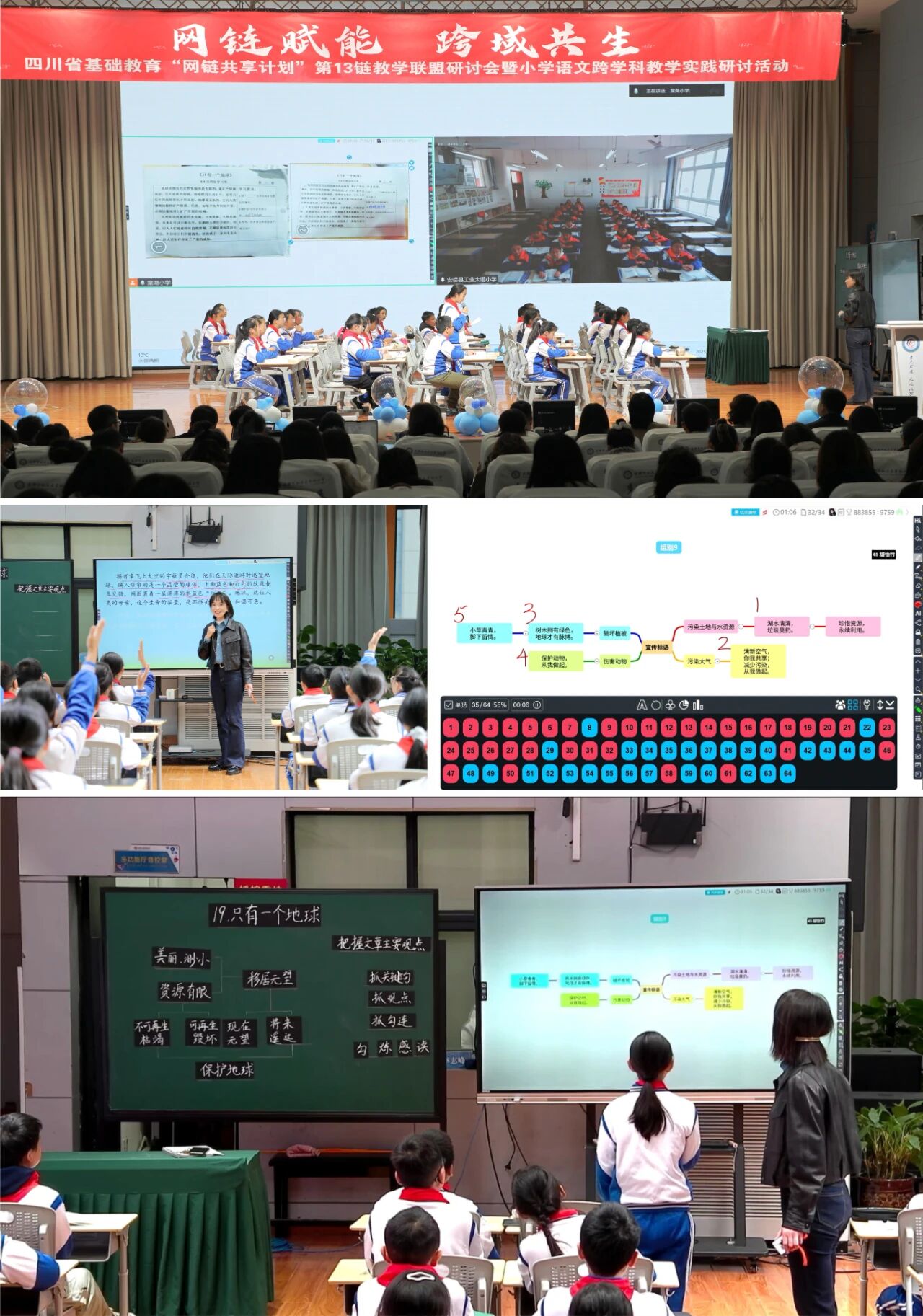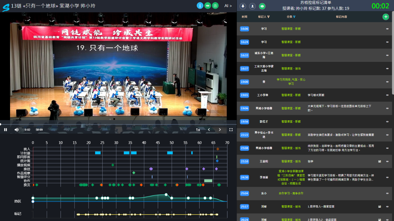 雙流區(qū)棠湖小學(xué)黨支部書記、校長楊柳在致辭中指出,“網(wǎng)鏈共享計(jì)劃”是推動(dòng)跨區(qū)域教育從簡單的“物理連接”邁向深度“化學(xué)融合”的重要紐帶。他希望聯(lián)盟校以此次活動(dòng)為契機(jī),進(jìn)一步深化合作共建,將“網(wǎng)鏈”活力切實(shí)轉(zhuǎn)化為育人動(dòng)力,讓跨區(qū)域教育探索結(jié)出“共生共長”的豐碩果實(shí),為基礎(chǔ)教育優(yōu)質(zhì)均衡發(fā)展持續(xù)賦能。 雙流區(qū)棠湖小學(xué)帥小玲老師執(zhí)教《只有一個(gè)地球》雙師示范課。課堂依托HiTeach智慧教學(xué)系統(tǒng),打破時(shí)空限制,為跨區(qū)域教學(xué)搭建起堅(jiān)實(shí)橋梁。課堂上,帥老師以跨學(xué)科視角、整本書閱讀理念為支撐,借助實(shí)時(shí)互動(dòng)、小組協(xié)作、學(xué)情即時(shí)反饋等功能,讓雙流區(qū)棠湖小學(xué)與安岳縣工業(yè)大道小學(xué)的學(xué)生,深度參與到課堂教學(xué)的各個(gè)環(huán)節(jié)。層層遞進(jìn)的提問、師生實(shí)時(shí)互動(dòng),直觀彰顯了網(wǎng)鏈同步課堂“異地同堂、實(shí)時(shí)互學(xué)”的技術(shù)優(yōu)勢與教學(xué)實(shí)效,為跨區(qū)域課堂教學(xué)融合提供了可借鑒、可推廣的實(shí)踐樣本。 點(diǎn)擊圖片查看本節(jié)課例完整影片 《中國教育學(xué)刊》四川省學(xué)用刊中心副主任劉彬教授的統(tǒng)籌帶領(lǐng)下,研討活動(dòng)圍繞 “情境創(chuàng)設(shè)”“知識(shí)調(diào)用”“情境轉(zhuǎn)換”“多元評價(jià)” 四大核心維度展開深入交流。安岳縣工業(yè)大道小學(xué)、寧南縣朝陽小學(xué)作為引領(lǐng)校,組織教師集中參與掃碼打點(diǎn)教研;其他聯(lián)盟校的教師則依托平臺(tái)支持,以文字、語音等形式實(shí)時(shí)分享觀課心得與教學(xué)思考。線上線下聯(lián)動(dòng)、主會(huì)場與分會(huì)場呼應(yīng),形成了強(qiáng)大的跨時(shí)空教研合力。劉彬教授現(xiàn)場梳理并生成教研成果,讓網(wǎng)絡(luò)教研真正回歸“真研討、實(shí)提升”的核心,助力教師專業(yè)成長。
