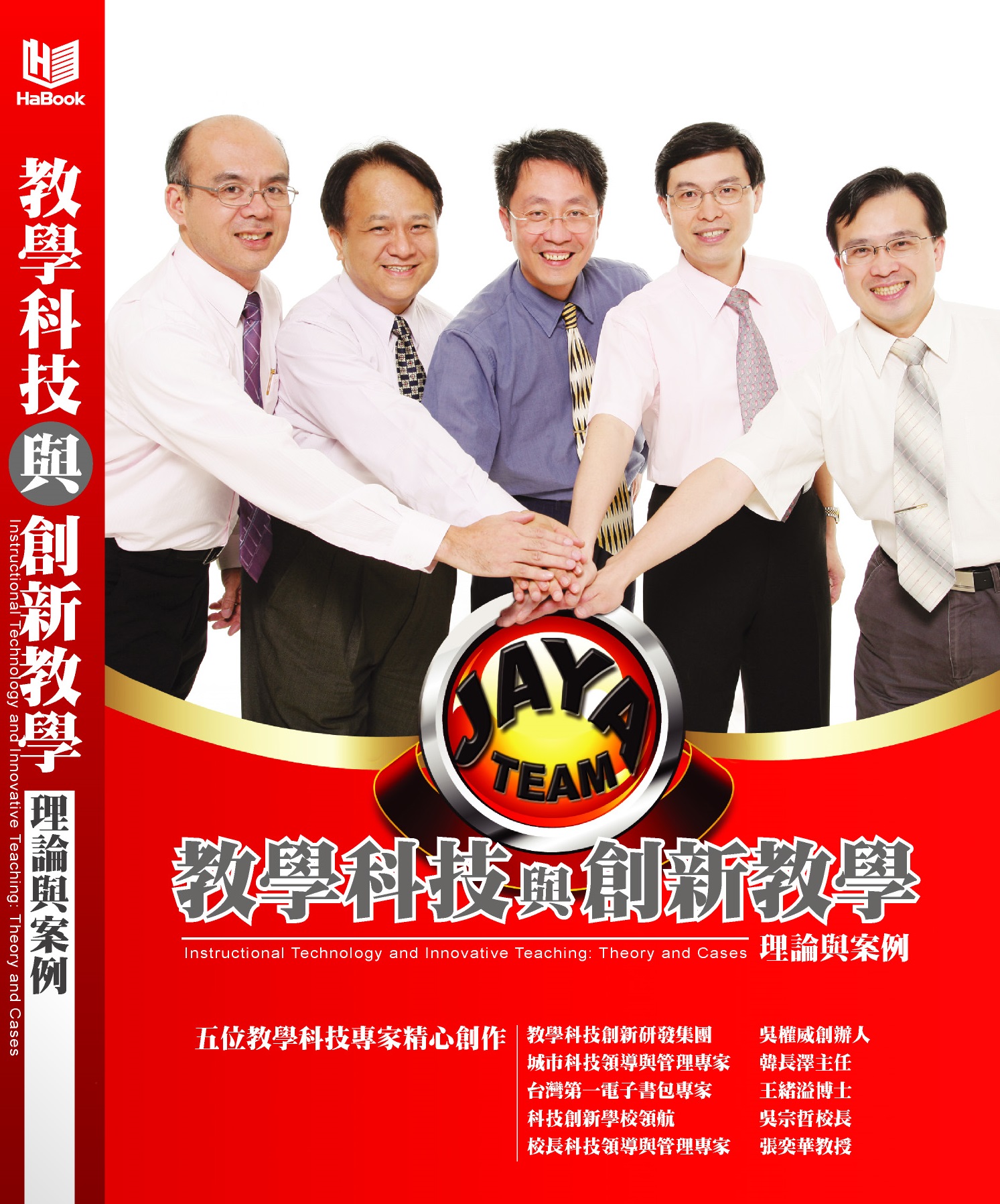 本書的作者群均具備長時間的教學(xué)科技與創(chuàng)新教學(xué)發(fā)展與應(yīng)用背景,由于志同道合并有共同理想而組成JAYA Team,JAYA在馬來語中是“成功”的意思。這五位專家分別是校長科技領(lǐng)導(dǎo)與管理專家、也是本書的主編政治大學(xué)教育系張奕華(Ace)教授、科技創(chuàng)新學(xué)校領(lǐng)航者(微軟全球第一所認證通過云端未來學(xué)校-臺北市蓬萊國?。﹨亲谡?John)校長、臺灣第一電子書包專家王緒溢(Yale)博士、城市科技領(lǐng)導(dǎo)與管理陀手(前臺北市教育局信息室)韓長澤(Jerry)主任,以及教學(xué)科技創(chuàng)新研發(fā)集團(網(wǎng)奕信息技術(shù))吳權(quán)威(Ajax)創(chuàng)辦人。希望經(jīng)由作者群所貢獻出來的智慧與經(jīng)驗,能幫助不只在臺灣,也包括所有海外的華人學(xué)校與老師成功地應(yīng)用教學(xué)科技,開創(chuàng)出創(chuàng)新的教學(xué)模式,最終使得我們的未來主人翁能夠受益。