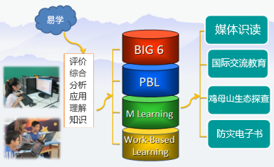 本教學(xué)團(tuán)隊(duì)以Big 6 教學(xué)模式為基礎(chǔ),將媒體識(shí)讀主題于語文領(lǐng)域的教學(xué)活動(dòng)歷程規(guī)劃如Big 6 教學(xué)模式所示的三階段六步驟,包括教學(xué)前、教學(xué)中以及教學(xué)後等階段。在教學(xué)前界定語文領(lǐng)域的修辭(回文、轉(zhuǎn)化、雙關(guān)..),如何以信息融入的方式學(xué)習(xí)(單槍投影機(jī)、電子白板、PPT..)信息工具的選用,云端信息平臺(tái)的架構(gòu)(WINDOWS LIVE @EDU)在教學(xué)歷程中運(yùn)用,并鼓勵(lì)學(xué)生發(fā)想、界定問題,再依學(xué)校e 化環(huán)境設(shè)備,使用適當(dāng)?shù)拿襟w與教材,激發(fā)學(xué)生參與實(shí)際動(dòng)手操作練習(xí),提升學(xué)習(xí)效率。最后再借由教師的引導(dǎo)整合學(xué)習(xí)的信息,評(píng)鑒整個(gè)教學(xué)活動(dòng)過程中,依據(jù)教學(xué)前設(shè)置之學(xué)習(xí)目標(biāo)進(jìn)行評(píng)鑒學(xué)習(xí)效果,以做為下一次調(diào)整教學(xué)之依據(jù)。