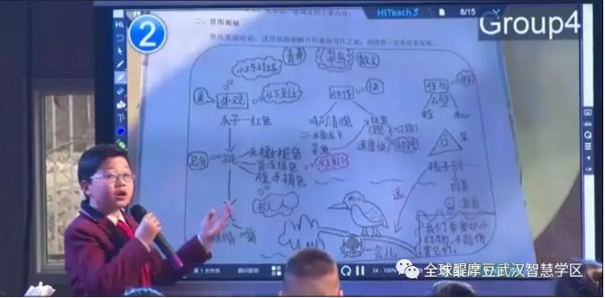4.第四組進行《翠鳥》學科思維導圖展講,通過邀請朗讀、內(nèi)容補充、觀點反駁、挑戰(zhàn)提問、合理建議、老師講解等方式,進行組際互動與全班教學。