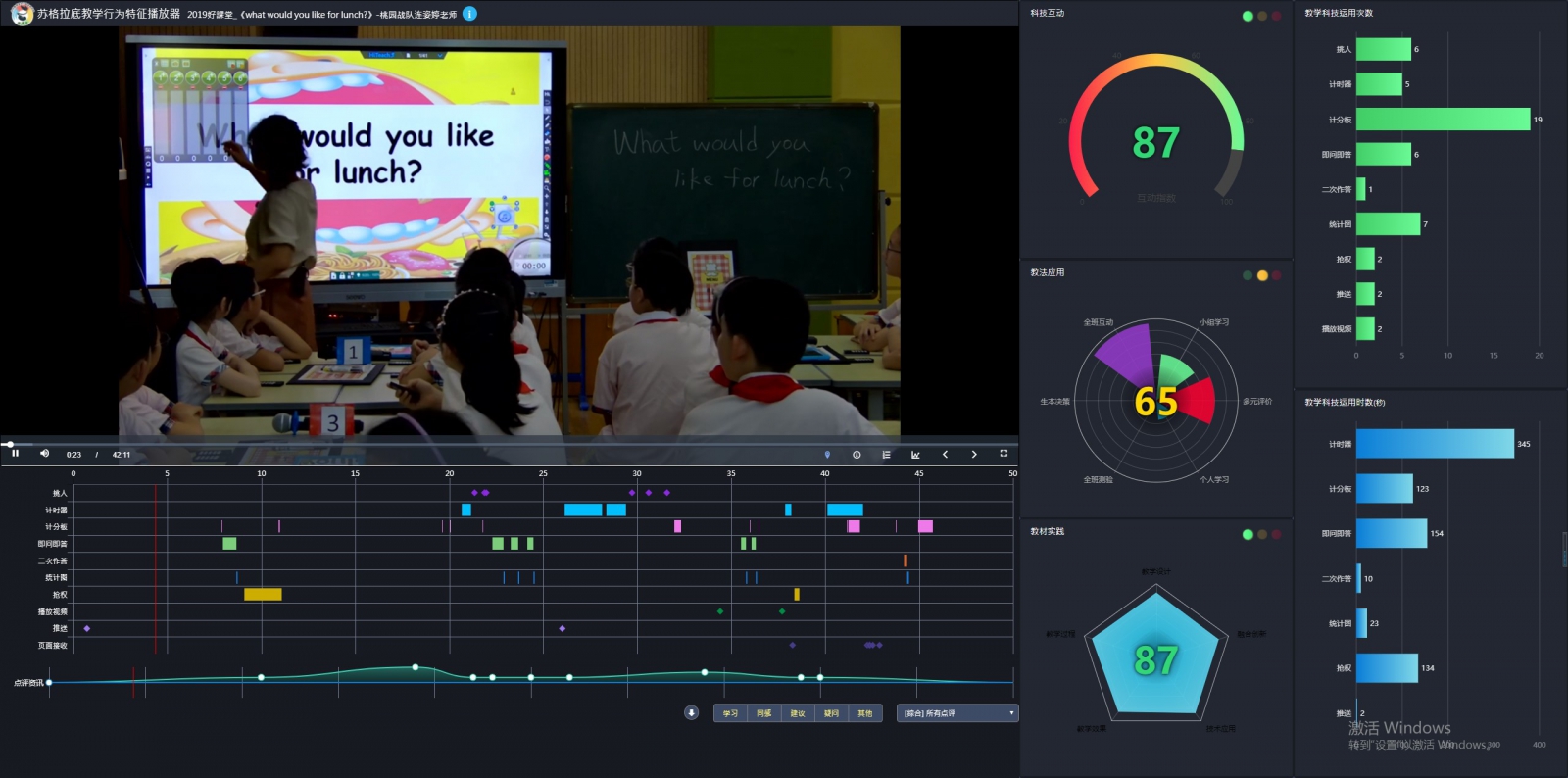 課例簡(jiǎn)介: 連老師的《What would you like for lunch? 》以認(rèn)識(shí)food為故事情境,搭配生動(dòng)活潑的影片與學(xué)習(xí)活動(dòng),如猜謎游戲、小組賓果活動(dòng)、任務(wù)卡等,激發(fā)學(xué)習(xí)熱情,在游戲化的學(xué)習(xí)中逐漸熟練重要單字與目標(biāo)句型,習(xí)得與文化生活相關(guān)的飲食概念,并且應(yīng)用至生活實(shí)際情境。