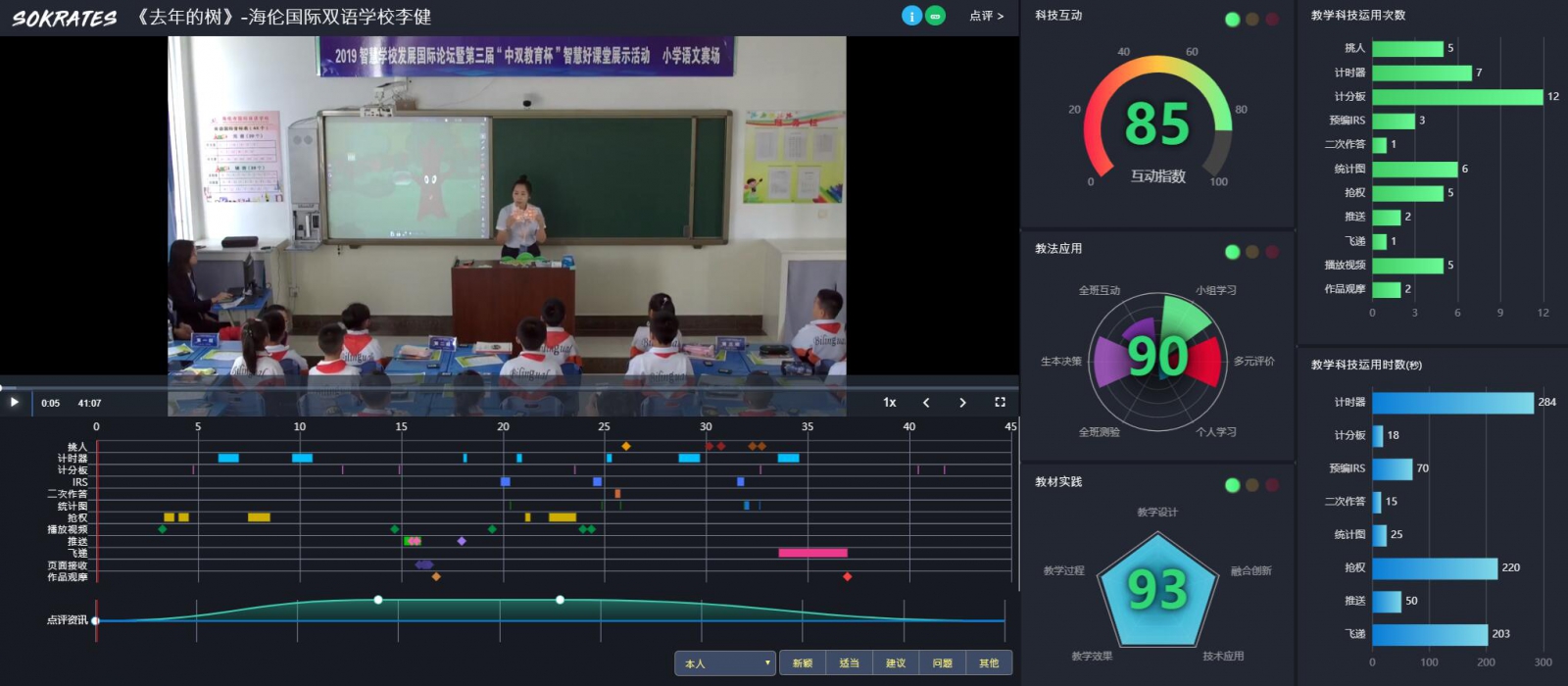 本節(jié)課是本著以生為本的課堂理念形成的一節(jié)生動(dòng)的、模式清晰的智慧課堂。本節(jié)課李健老師運(yùn)用了HiTeach智慧教育系統(tǒng)支持下的智慧教室開(kāi)展教學(xué),在智慧教室支持下,幫助學(xué)生們多層次,多角度地進(jìn)行學(xué)習(xí),提升感情,進(jìn)而激發(fā)學(xué)生對(duì)語(yǔ)文課堂的學(xué)習(xí)興趣,課堂中學(xué)生每人一個(gè)IRS反饋器、每小組一個(gè)平板電腦。