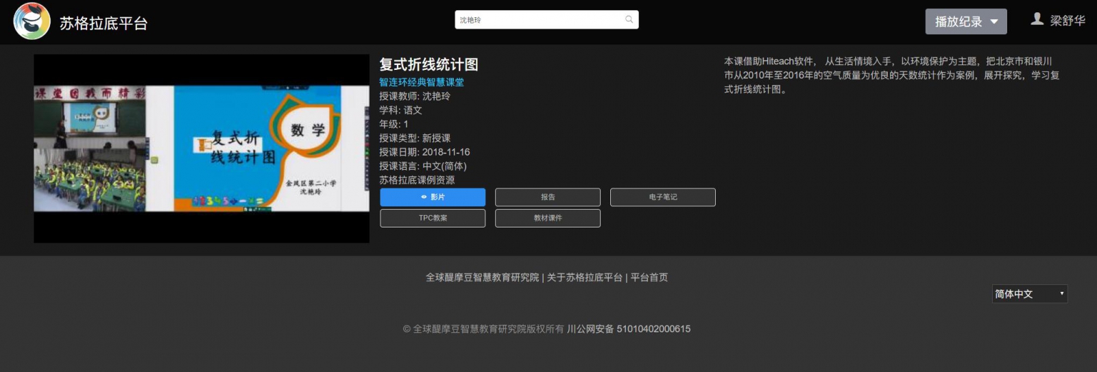 討及課例展示任務(wù)。并在銀川市第二屆“推進(jìn)課堂變革 提升教學(xué)效率”課堂展活動(dòng)中榮獲一等獎(jiǎng);在本年度全區(qū)“一師一優(yōu)課、一課一名師”活動(dòng)中,執(zhí)教的《復(fù)式折線統(tǒng)計(jì)圖》一課,被評(píng)為自治區(qū)級(jí)“優(yōu)課”。2018年,承擔(dān)了與成都師范銀都紫藤小學(xué)的遠(yuǎn)程對(duì)接課,第一次實(shí)現(xiàn)了省際間的遠(yuǎn)程教學(xué)。帶領(lǐng)校學(xué)教師參加全國(guó)“醍摩豆杯”智慧課堂創(chuàng)新團(tuán)隊(duì)競(jìng)賽,榮獲團(tuán)隊(duì)比賽一等獎(jiǎng)、個(gè)人比賽特等獎(jiǎng)。參加全區(qū)中小學(xué)“互聯(lián)網(wǎng)+教育”應(yīng)用大賽,榮獲教學(xué)課例二等獎(jiǎng)。2019年,參加“第十屆基于網(wǎng)絡(luò)的教師實(shí)踐社區(qū)學(xué)術(shù)交流觀摩活動(dòng)”課例比賽,參賽課例被評(píng)為優(yōu)秀課例。在2019年度的“一師一優(yōu)課 一課一名師”活動(dòng)中我執(zhí)教課例榮獲部級(jí)優(yōu)課。2020年,疫情期間,先后承擔(dān)了金鳳區(qū)在線課堂錄制工作、自治區(qū)空中課堂錄制工作。在信息技術(shù)與教學(xué)融合創(chuàng)新優(yōu)秀空中課堂評(píng)選中,兩節(jié)課例均榮獲一等獎(jiǎng)。在銀川市微課制作比賽中,榮獲二等獎(jiǎng)。