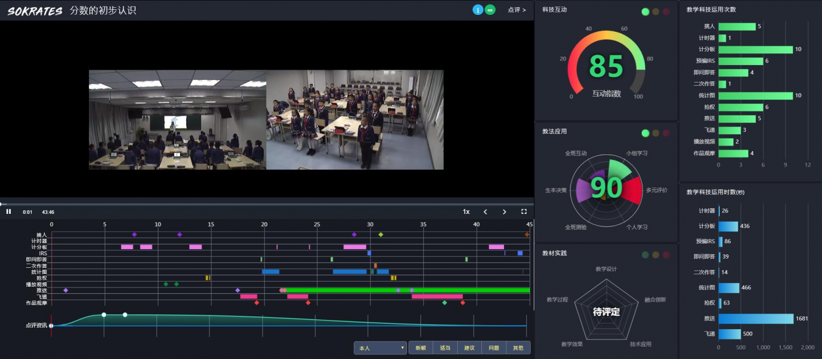 在探究新知的過程中,首先運用智慧教室抽人、搶權(quán)回應(yīng)老師提出的問題,達(dá)到擴大關(guān)注、重視個體反饋和促進公平的目的,并且及時評價與激勵。其次充分利用HiTeach電子白板批注功能及時生成學(xué)生課堂資源,運用隨機抽取功能、搶答功能、推送、拍照、飛遞、評量、二次選擇、飛訊等機制。讓師生互動與小組合作,更高效進行。在小組合作中,采用TBL團隊學(xué)習(xí)模式,進行異質(zhì)分組,平板推送學(xué)習(xí)內(nèi)容,探究除了二分之一以外的其他分?jǐn)?shù)。建設(shè)小組團隊合作能力,構(gòu)建互相信任、共同承擔(dān)的意識。在學(xué)生領(lǐng)會學(xué)習(xí)知識的方法和要領(lǐng)以后,及時利用智慧課堂教學(xué)系統(tǒng)的IRS反饋功能和作品觀摩功能,實現(xiàn)人人互動,及時反饋,掌握結(jié)果,重視感受。運用智慧教室的數(shù)據(jù)分析統(tǒng)計功能,以看見學(xué)生的思維變化過程,重視學(xué)生的感受,有效利用數(shù)據(jù)進行決策與改變。在下課前,采取即問即答,并通過統(tǒng)計圖了解學(xué)生掌握知識的情況。最后及時總結(jié)評價小組表現(xiàn)。