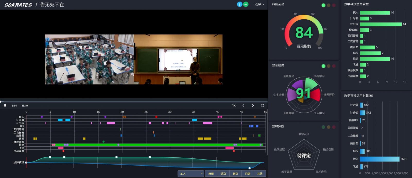 最后的檢測環(huán)節(jié)依IRS的答題結(jié)果統(tǒng)計,去提供差異化教學(xué),學(xué)生能思考做出回答,對有疑問的題目得到反饋并聆聽別人的交流,對于本節(jié)課學(xué)生的掌握情況有所了解,教師有效檢測了學(xué)習(xí)成果。