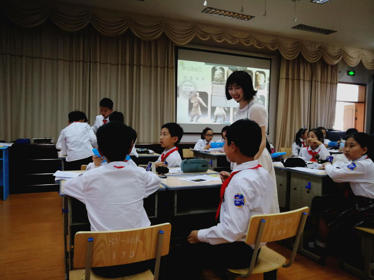 這是一節(jié)科技領(lǐng)航的語文課——巧用技術(shù),精準(zhǔn)可視,有效探究。這節(jié)課,運(yùn)用了計(jì)時(shí)器、挑人、搶權(quán)、票選、HiTa助教(手機(jī)拍照上傳)、作品觀摩分享(平板拍照上傳)、計(jì)分板、拖拽等這些功能。這些可視化學(xué)習(xí)數(shù)據(jù)分析,可以立即判斷學(xué)生知識掌握情況,教師及時(shí)干預(yù),給與精準(zhǔn)的決策,提高了學(xué)習(xí)效率。