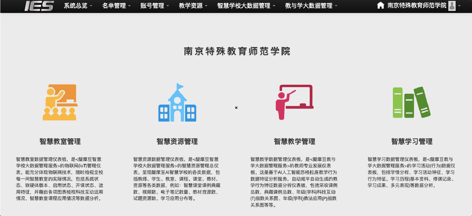 南京特殊教育師范學(xué)院是中國唯一一所獨(dú)立設(shè)置的、以培養(yǎng)特殊教育師資為主的普通高等學(xué)校。學(xué)校自2018年起建設(shè)醍摩豆智慧教室mobile模式63間、IRS模式10間,并導(dǎo)入建立AI蘇格拉底平臺,通過人工智能評課議課促進(jìn)特殊教育學(xué)校學(xué)科發(fā)展及師范院校專業(yè)課模式提煉。學(xué)校組織開展了'青年教師智慧教學(xué)大賽“,展示醍摩豆智慧課堂的魅力,全校師生參與其中,并利用IRS反饋器進(jìn)行即時評分,利用智能靈巧的技術(shù),激發(fā)課堂活力和智慧,開創(chuàng)新型模式,構(gòu)建精準(zhǔn)教學(xué),打造特師“金課”。