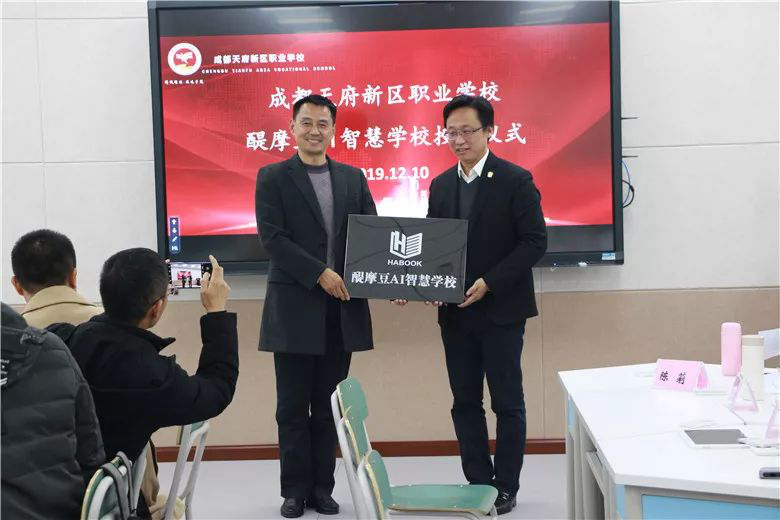 同時(shí),在本次活動(dòng)中,醍摩豆(成都)信息技術(shù)有限公司陳權(quán)執(zhí)行長(zhǎng)為成都天府新區(qū)職業(yè)技術(shù)學(xué)校授予了“醍摩豆AI智慧學(xué)校”的稱號(hào)。這標(biāo)志著天府職校的信息化教學(xué)又向前邁進(jìn)了一大步。