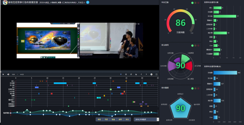 猜想---質(zhì)疑---驗(yàn)證---應(yīng)用,整節(jié)課模式清晰,智能高效。在智慧教室支持下,實(shí)踐生本理念,加強(qiáng)關(guān)注每一位學(xué)生的學(xué)習(xí)動(dòng)機(jī)與學(xué)習(xí)成效。并采用TBL團(tuán)隊(duì)合作學(xué)習(xí)模式,進(jìn)行異質(zhì)分組,促進(jìn)個(gè)人思考、小組合作。多元化理解「任意三角形的內(nèi)角和是180度」