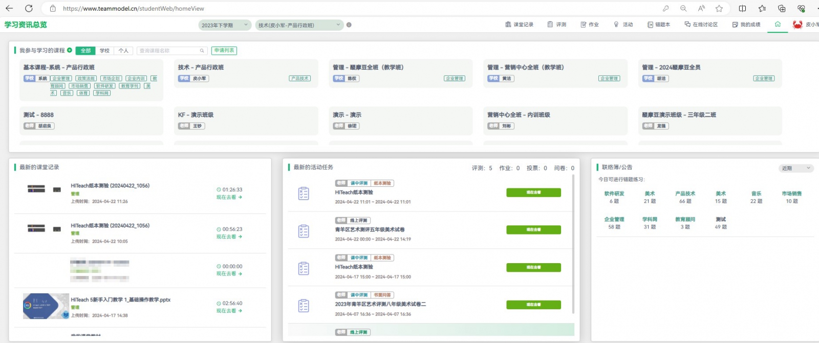 登入后,進入學生專屬的學生端頁面中。