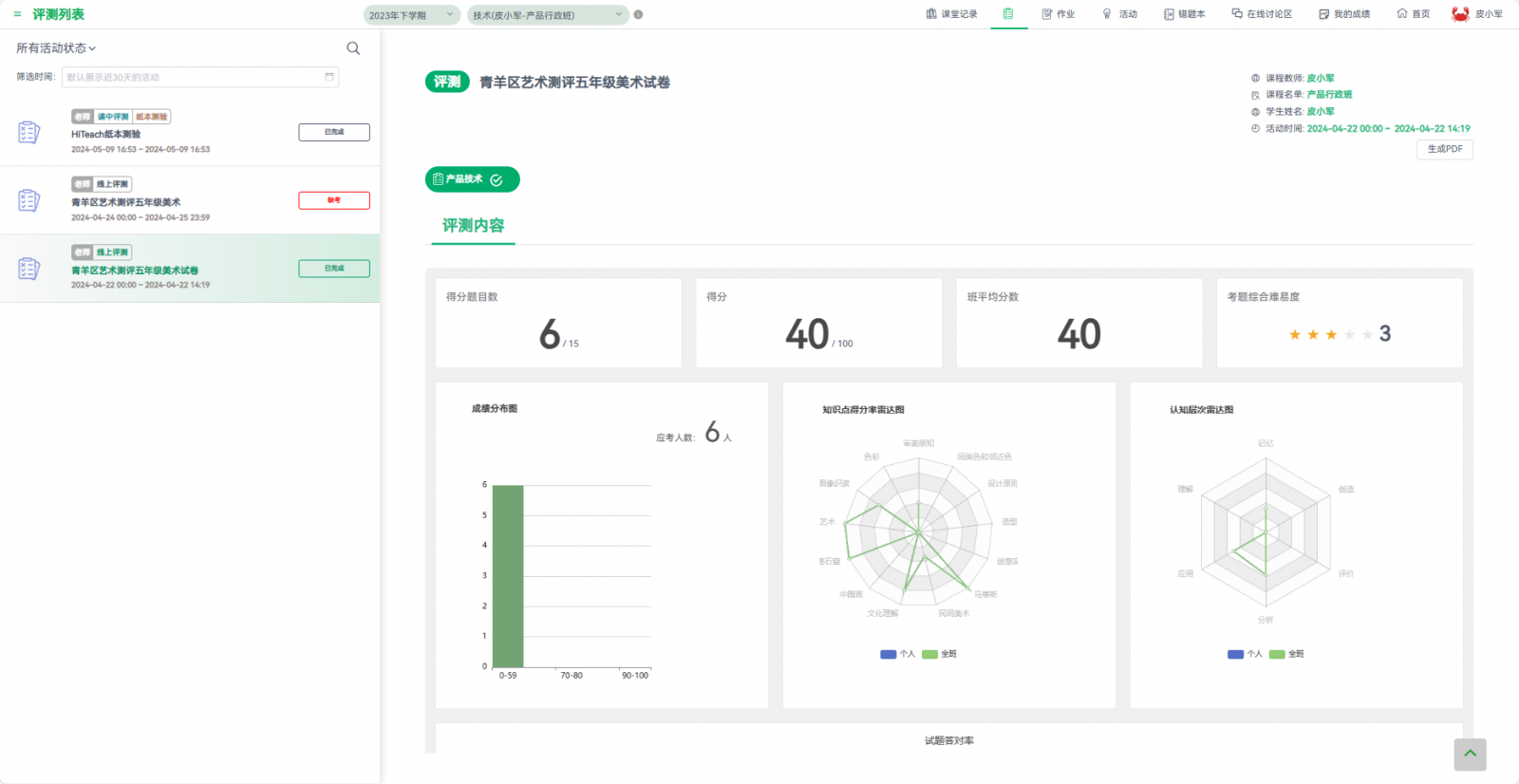 學生進入平臺后(學生端平臺稱為AClass ONE智慧學伴)即可查看測驗結果、或進行錯題練習。