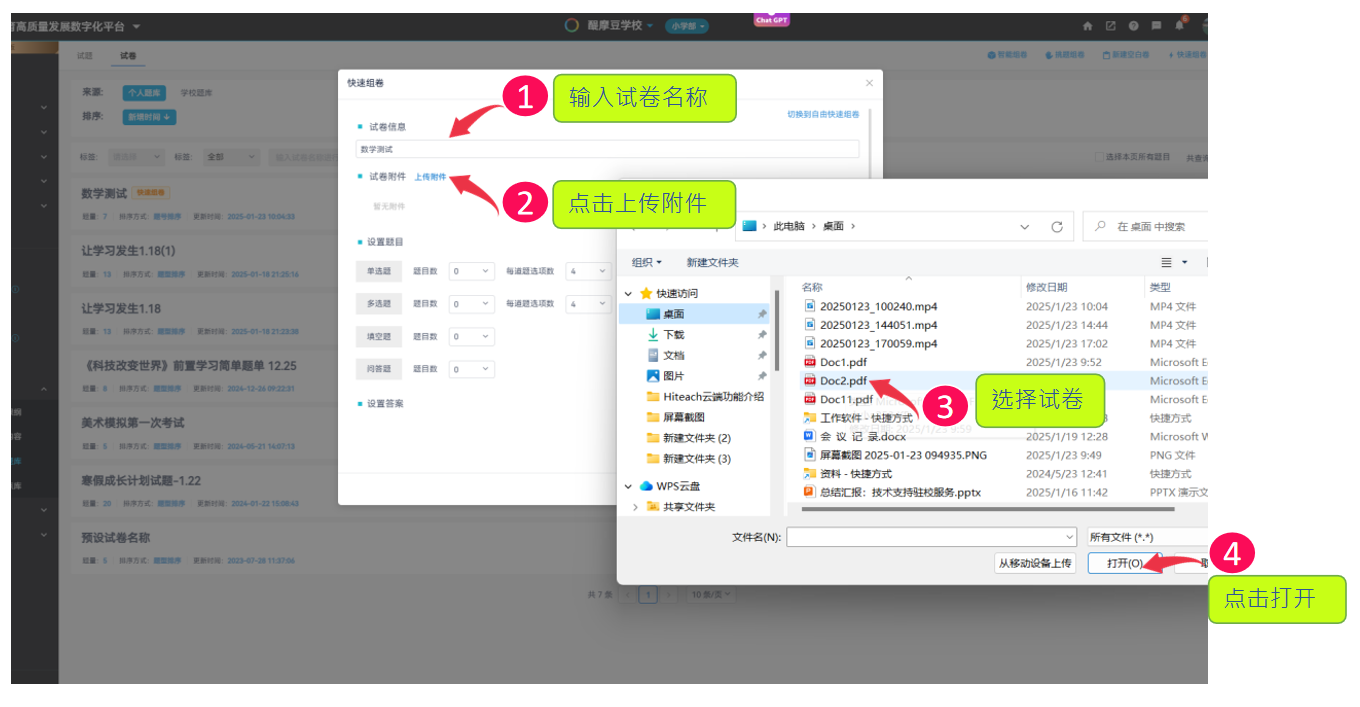 可將試卷事先下載附件形式到HiTeach頁面并存檔