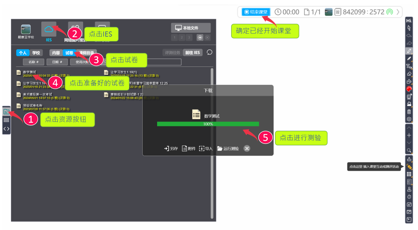 當(dāng)您在IES云端平臺(tái)準(zhǔn)備好試卷后,在HiTeach中即可使用此試卷進(jìn)行測驗(yàn)。