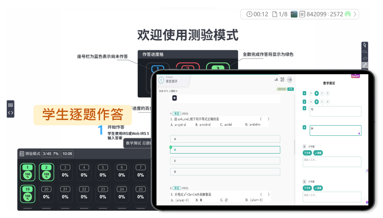 隨即開始進(jìn)入測驗(yàn)?zāi)J剑瑢W(xué)生端在平板計(jì)算機(jī)或筆電中就會(huì)看到這份試卷的題目,開始作答。