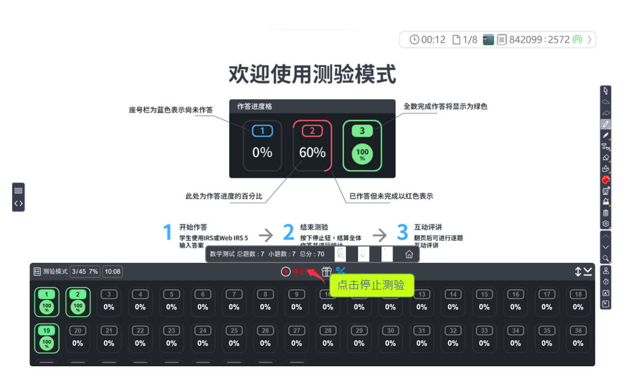 ?3.學(xué)生完成測驗(yàn)后,老師HiTeach點(diǎn)擊停止鈕結(jié)束測驗(yàn)。