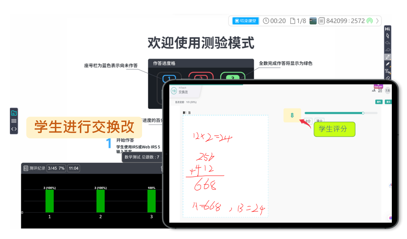 可以喔,但是答題之后,需要輔以交換改的功能,讓學(xué)生間相互評(píng)分。若想要系統(tǒng)可自動(dòng)批改,則需要要求學(xué)生輸入答案的規(guī)范,再輔以交換改確認(rèn),仍然可以很有效率!?可以把IES云端試卷課前先下載準(zhǔn)備在HiTeach頁面中嗎?