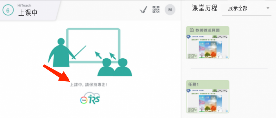 當(dāng)Web IRS與HiTeach連線加入課堂后,若沒(méi)有任何互動(dòng)資訊,Web IRS會(huì)顯示「上課中, 請(qǐng)保持專注!」。