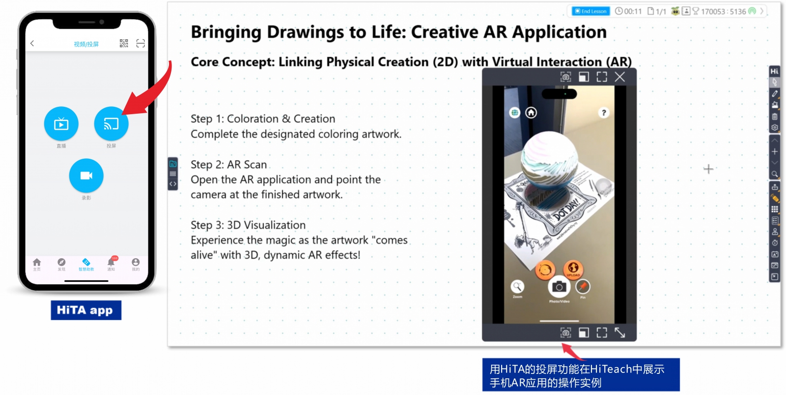 | 科技/信息 | APP 操作示范 | 教師直接在手機(jī)上操作特定AR App、學(xué)習(xí)軟件或云端平臺(tái),并用鏡像功能將操作步驟同步展示給全班觀看。 |