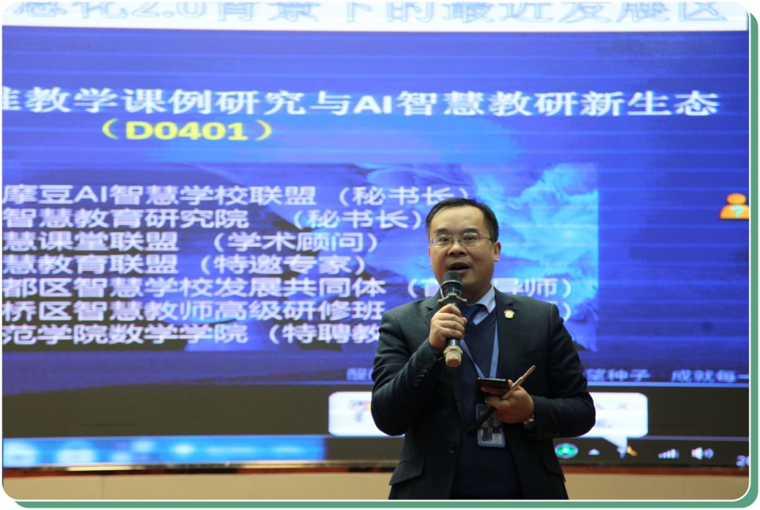 隨后,帶來了主題為《基于數(shù)字化的精準教學(xué)課例研究與AI智慧教研新生態(tài)》的精彩報告。劉教授聚焦課堂,同時圍繞三個問題:不忘本來,吸收外來,面向未來?扁平化的“智慧眾籌”式的教研創(chuàng)生智慧?技術(shù)賦能下的“學(xué)與教”變革思考?向教師們講解了“智慧課堂”和“智慧教研”。