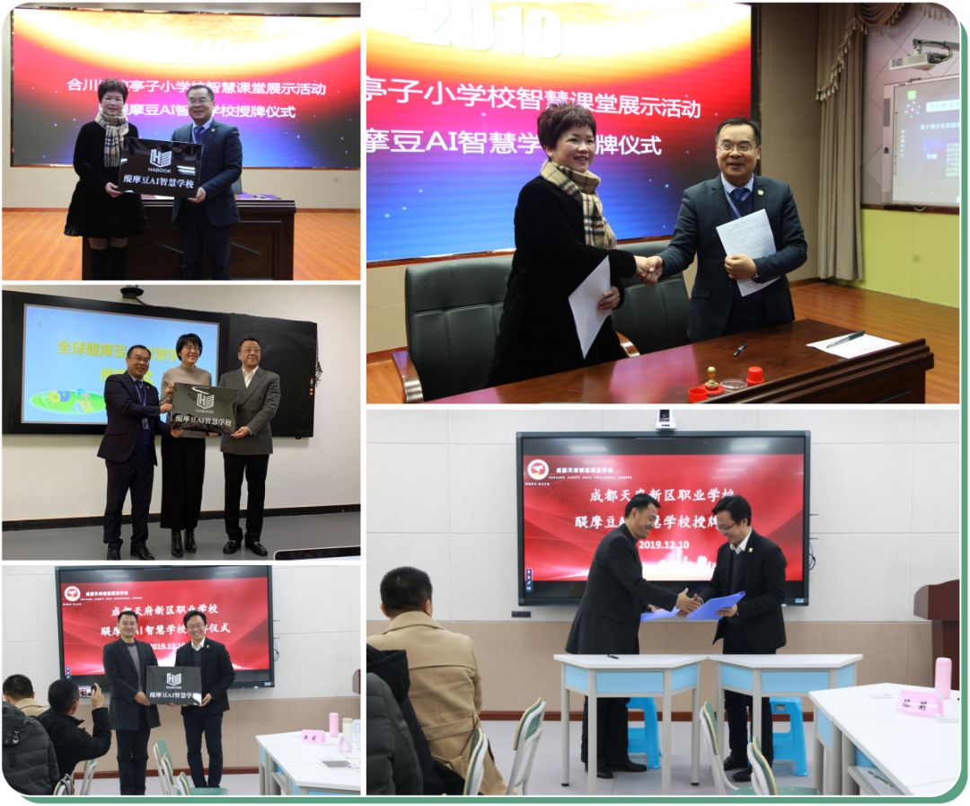 劉彬校長分別為重慶合川涼亭子小學(xué)、北京東城區(qū)培新小學(xué),陳權(quán)執(zhí)行長為成都天府新區(qū)職業(yè)技術(shù)學(xué)校授予了“醍摩豆AI智慧學(xué)校”的稱號。