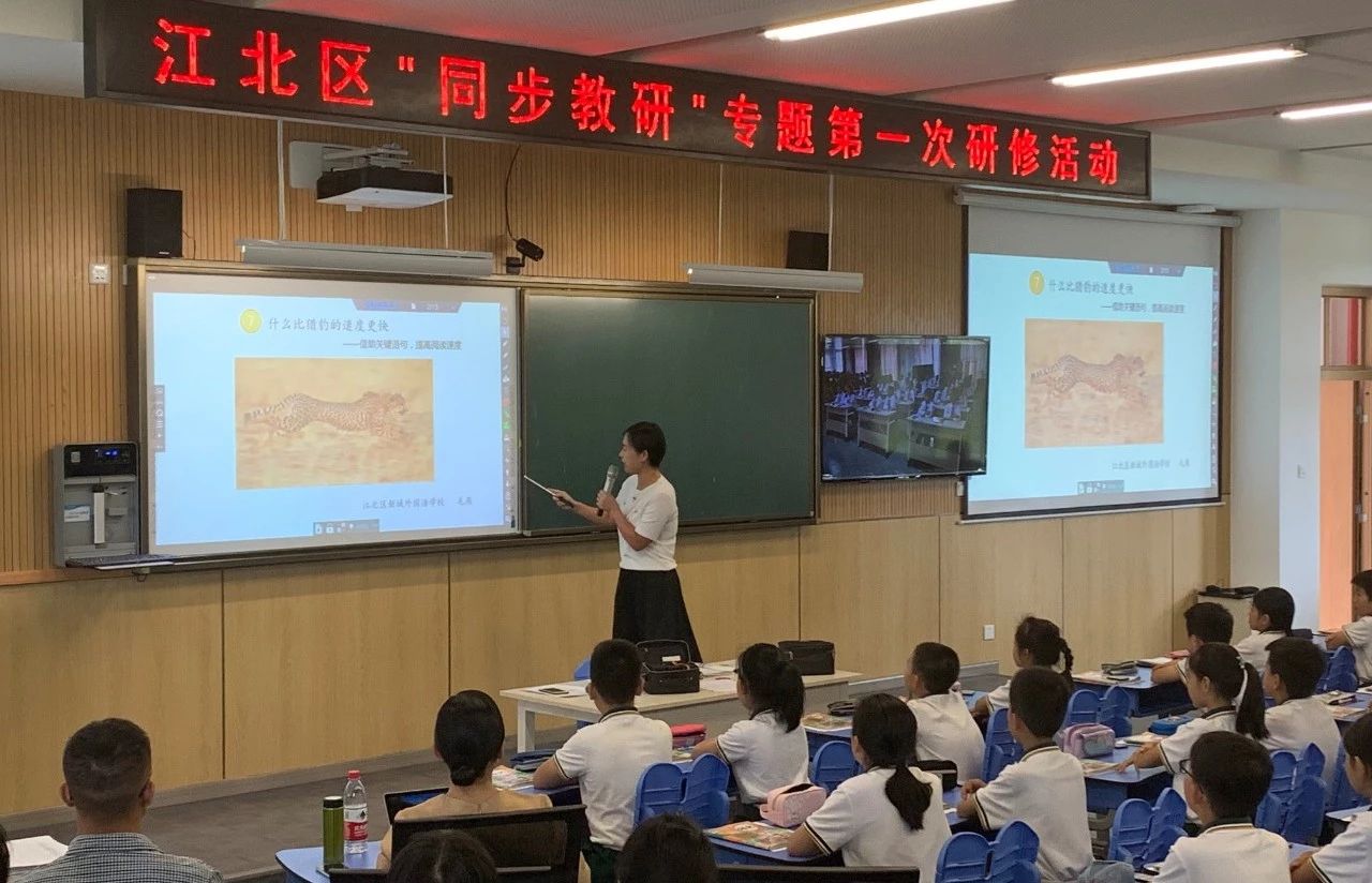 9月25日下午,江北區(qū)“同步教研”專題第一次研修活動在新城外國語學校舉行。參與本次活動的人員有:北區(qū)同步課堂試點學校的教研組長及骨干教師、浙江省互聯(lián)網+義務教育千校結對試點校相關領導及骨干教師,同時,余姚市教研室許黎劍副主任帶領余姚市同步課堂試點學校相關領導及骨干教師共同觀摩了本次“同步課堂”。