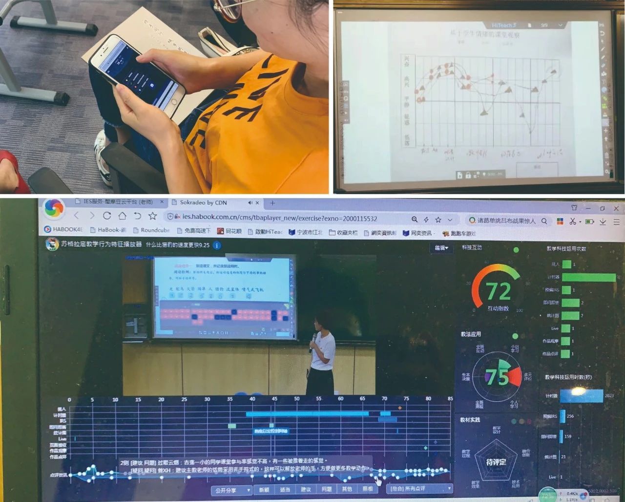 毛燕老師,就自己的教學設計及達成程度做了自我分析。遠端齊夢蘿老師,基于輔教的角度以學生的學習情緒為觀察點,對本堂課目標的達成情況作出分析。在場聽課的教師更是借助科技,實時點評,運用蘇格拉底AI人工智能教學行為分析系統(tǒng)錄制課堂教學過程、采集教師實時評價、形成專業(yè)的數(shù)據(jù)分析。