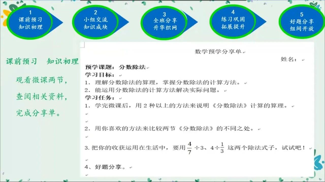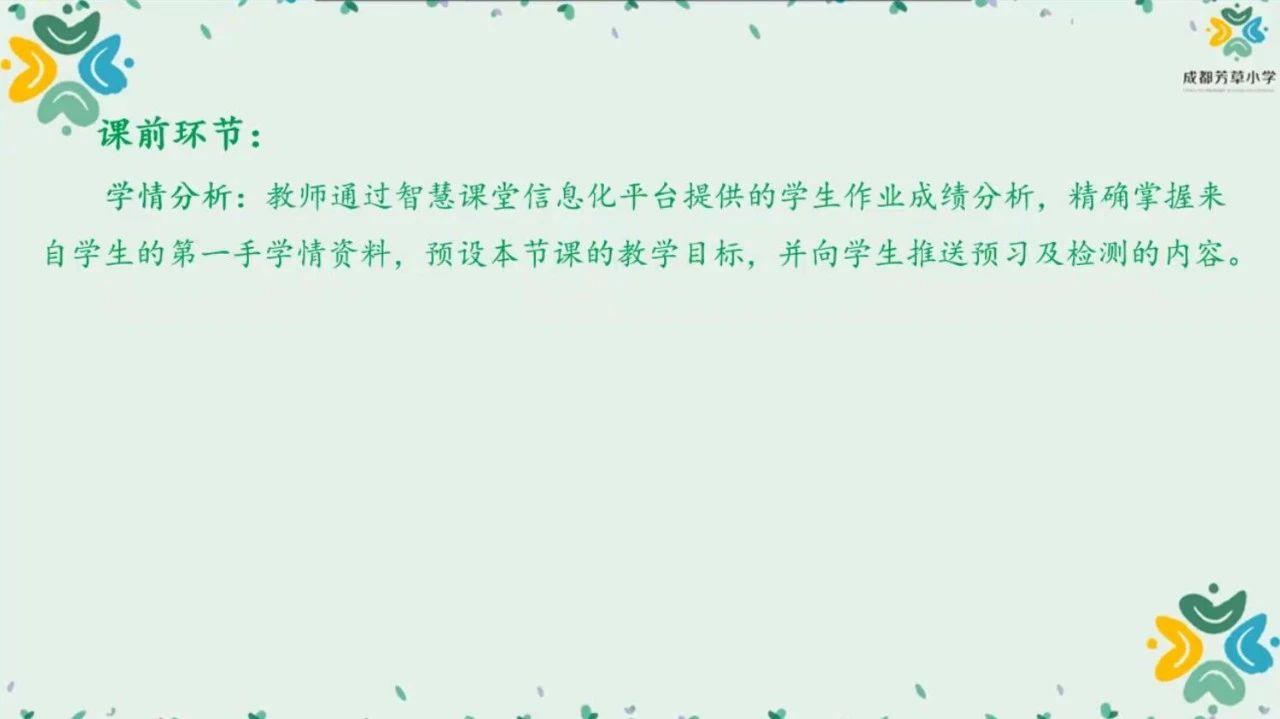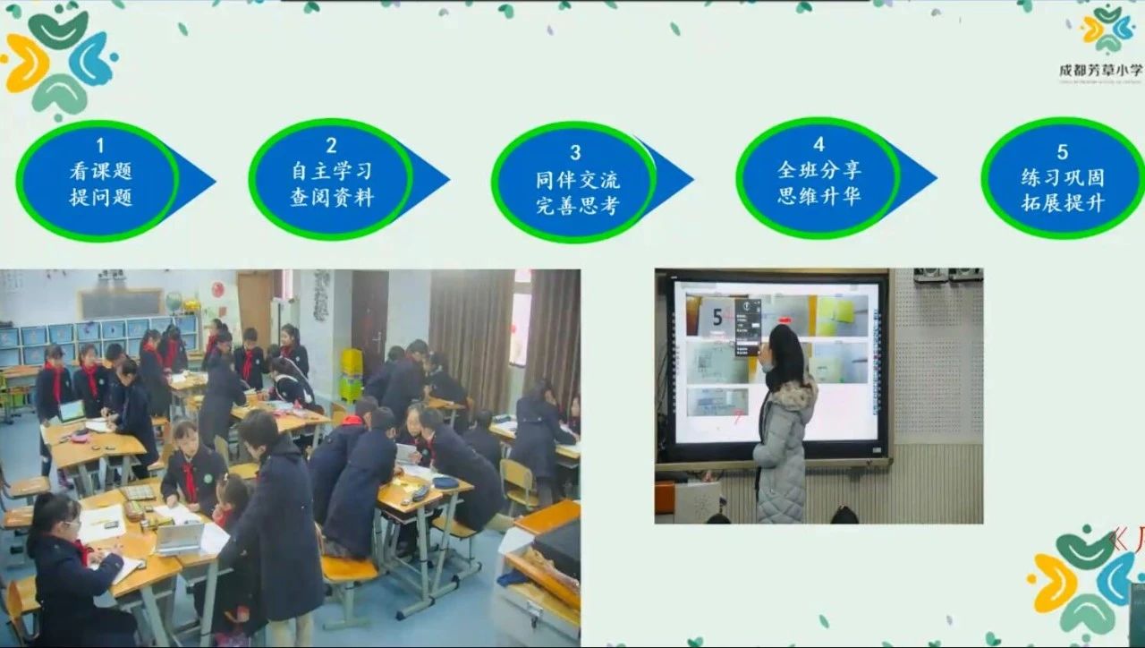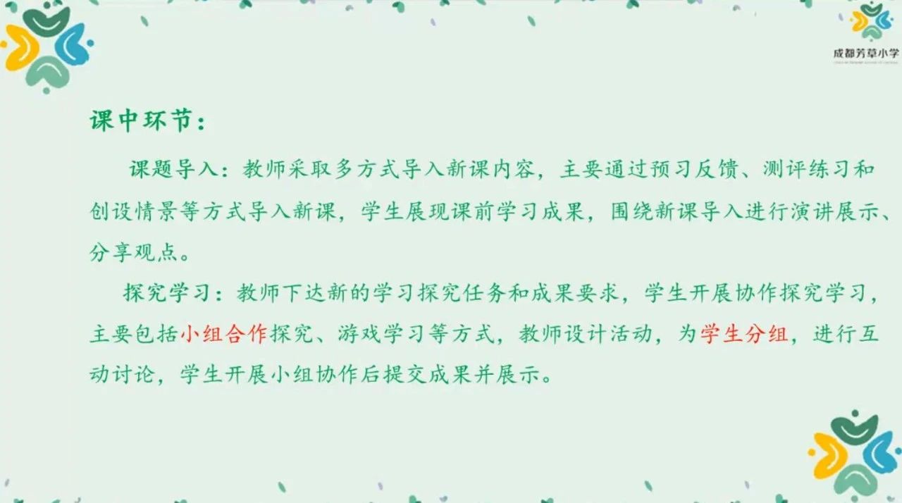 并對學(xué)校的教學(xué)方法(課前、課中),教學(xué)流程(課前預(yù)習(xí),知識初理;小組交流,知識成塊;全班分享,升華織網(wǎng);