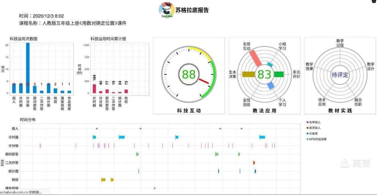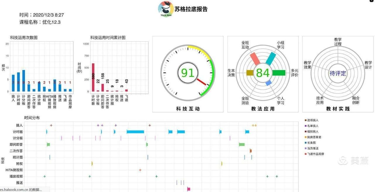 高偉老師的《優(yōu)化》一課,扎實的基本功、豐富的教學(xué)語言、合理的教學(xué)設(shè)計、流暢的教學(xué)過程、特具匠心的教學(xué)指導(dǎo),營造了一個高效、活躍的課堂氛圍。通過醍摩豆智慧教室系統(tǒng)將課堂數(shù)據(jù)整合,及時反饋、TBL團隊合作學(xué)習(xí)模式、精準(zhǔn)挑人等,實現(xiàn)了一對一的教學(xué)目標(biāo)。