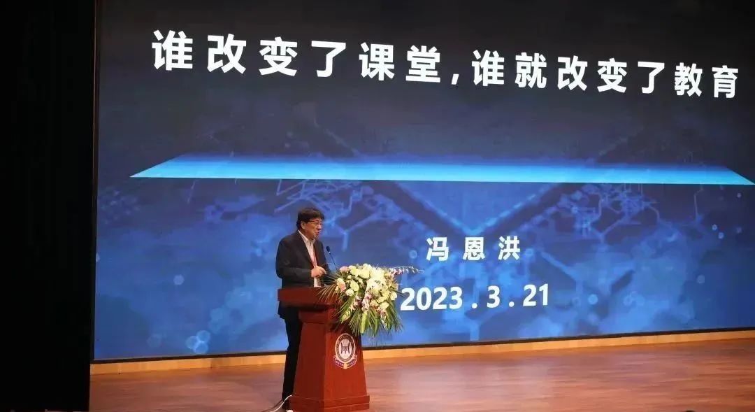 成都市教育科學(xué)研究院黨委書記、院長(zhǎng)羅清紅以“深耕課堂,數(shù)據(jù)導(dǎo)航,構(gòu)建教育新生態(tài)”為題向大會(huì)作出報(bào)告,他指出變革教育教學(xué)應(yīng)正視時(shí)代特征,教師的教學(xué)應(yīng)與計(jì)算機(jī)的優(yōu)勢(shì)融合,做到人機(jī)一體,提高學(xué)習(xí)效率,并發(fā)展課外活動(dòng),實(shí)現(xiàn)五育并舉,發(fā)展個(gè)性化、平民式的教育。