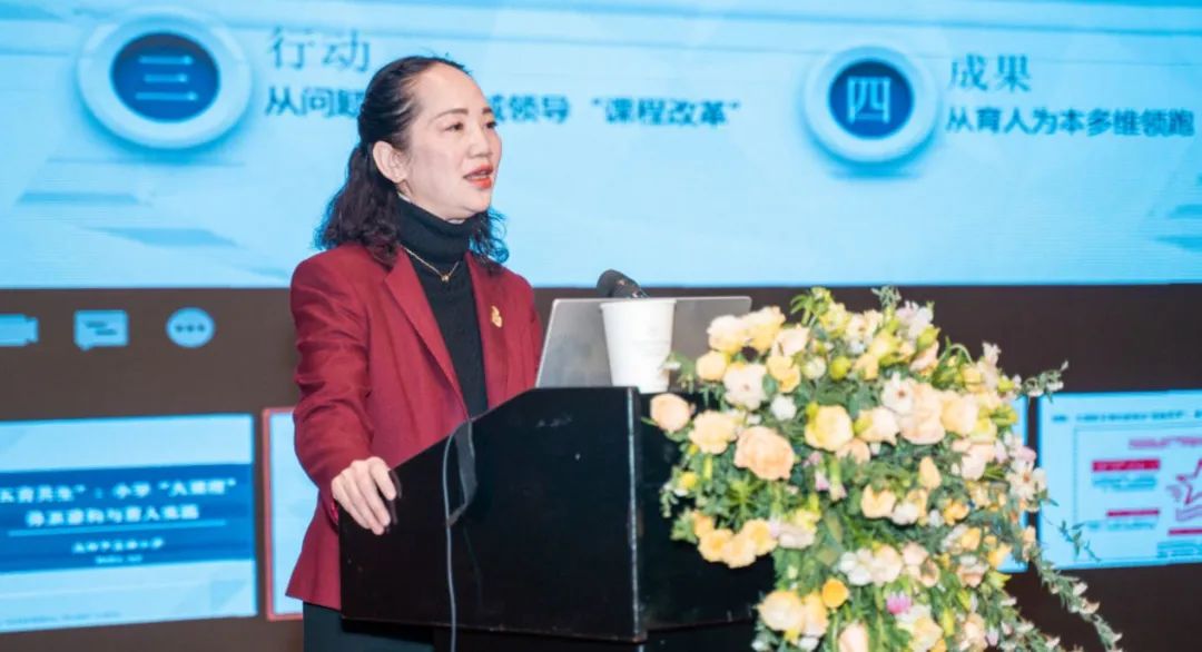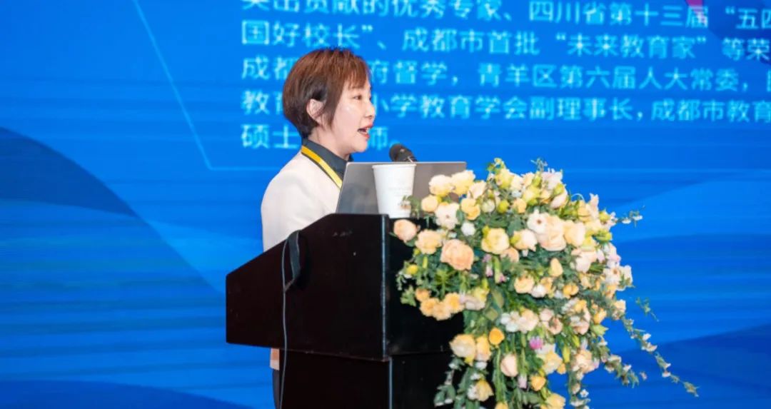 重慶謝家灣教育集團(tuán)黨委副書記、重慶市九龍坡區(qū)謝家灣小學(xué)校長(zhǎng)羅鳳帶來《基于學(xué)校高質(zhì)量育人的謝家灣學(xué)校實(shí)踐》的主題報(bào)告,她從現(xiàn)狀的審視、學(xué)習(xí)方式的認(rèn)識(shí)、實(shí)踐探索概述了學(xué)校在高質(zhì)量育人板塊的改革方式和思維模式。