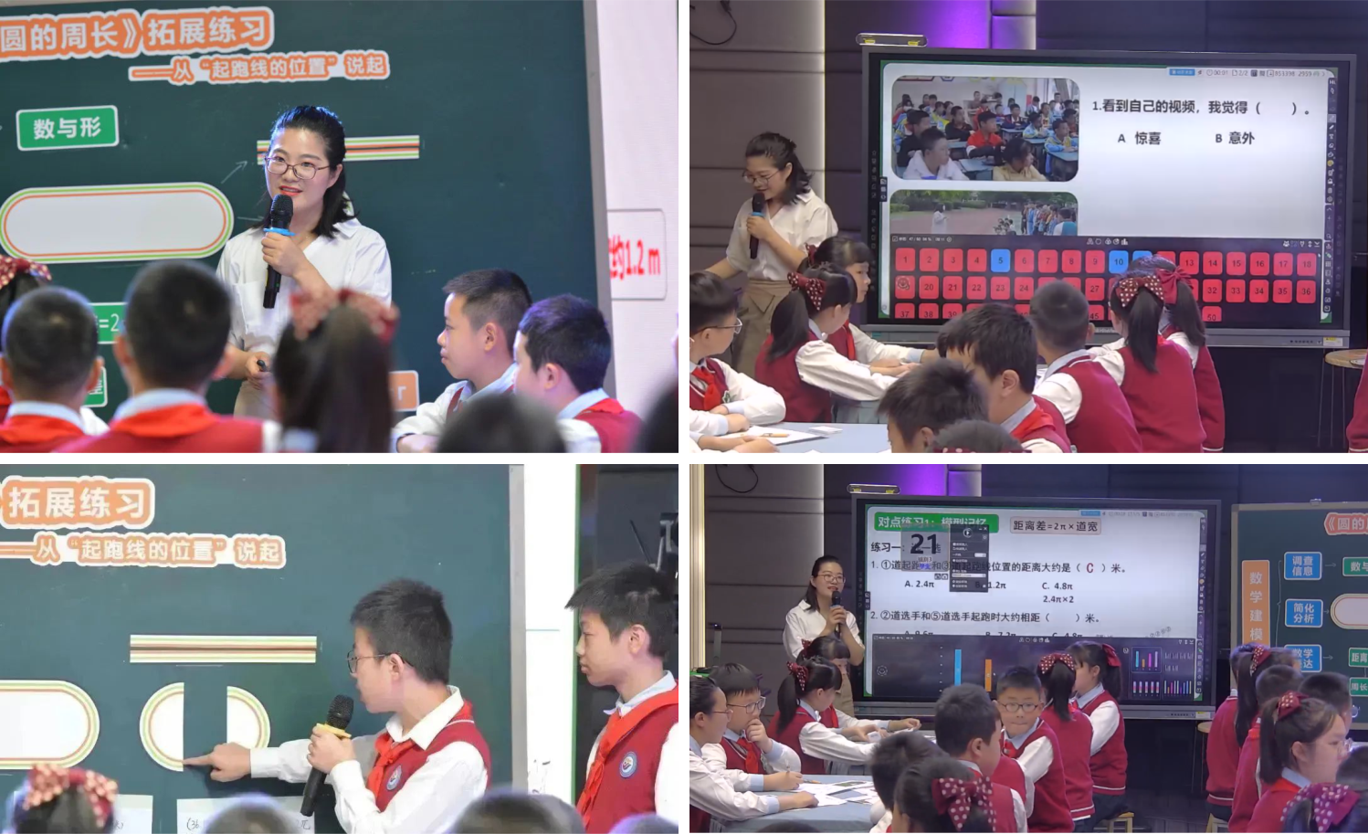 成都經(jīng)開區(qū)教育局黨組成員、教科院吳璀院長致歡迎辭,她總結成都經(jīng)開區(qū)(龍泉驛區(qū))區(qū)域性的教學綜合改革的蛻變歷程,也表示在“雙新”“雙減”背景下,區(qū)域將持續(xù)以培養(yǎng)學生核心素養(yǎng)為導向,引領教師開展學生素養(yǎng)導向新教學實踐,將乘著全國首個“五育并舉”試驗區(qū)的東風,積蓄力量,深化改革。也希望通過本次兩區(qū)聯(lián)合教研活動,兩區(qū)攜手共進,共同發(fā)展。 西安經(jīng)開發(fā)區(qū)教育體育局劉緣副局長為活動致辭,他表示這次活動舉辦的初衷則是交流共享,共同進步,他高度評價西安經(jīng)開第八小學的數(shù)字化校園建設,利用信息技術促進教學教學質量融合提升,是西安經(jīng)開區(qū)教育數(shù)字化的佼佼者,也是全省全市數(shù)字化教育的引領者,希望學校通過今天的活動取長補短,繼續(xù)探索出更多可推廣復制的新模型。 西安經(jīng)開第八小學李濤校長表示本次活動是突破思維,突破地域、突破壁壘的一種相遇,這種突破離不開信息技術的支撐,離不開兩地對智慧教育的追求,她總結提煉了學校高速發(fā)展經(jīng)驗,高度認可信息技術帶來的課堂成效。 課堂是兩個世界平等而美好的相遇,學生在這場相遇中抵達一個山頂,是教育人永遠追求攀登的高地,在技術的支持下,在區(qū)域的聯(lián)合下,兩地教師共研課例,智慧共生。龍泉五小徐慧玉老師執(zhí)教《從“起跑線的位置”說起》,徐老師與孩子們通過實地調查,網(wǎng)絡收集跑道數(shù)據(jù),重點著力簡化分析,帶領孩子們從量的研究走向關系的梳理,呈現(xiàn)了數(shù)學建模的全過程。