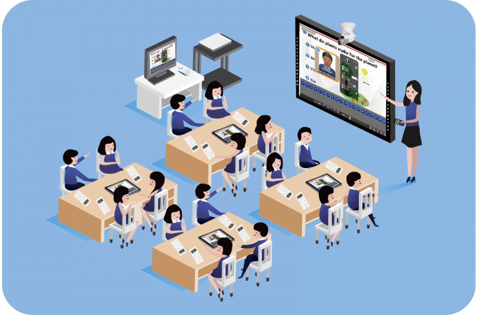TBL智慧教室主要是由教師端計算機上的HiTeach 5與學(xué)生端小組觸控裝置的HiGroup、每個學(xué)生也配置IRS反饋器所構(gòu)成。
