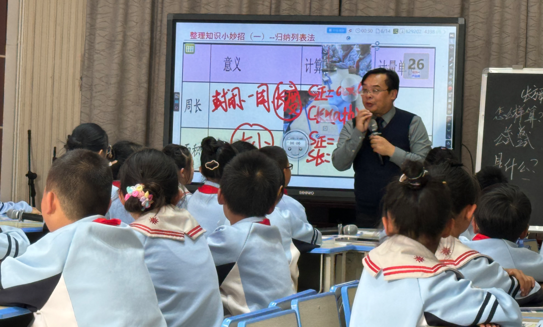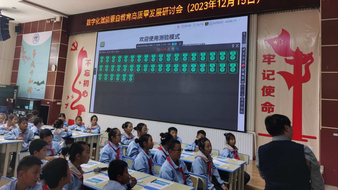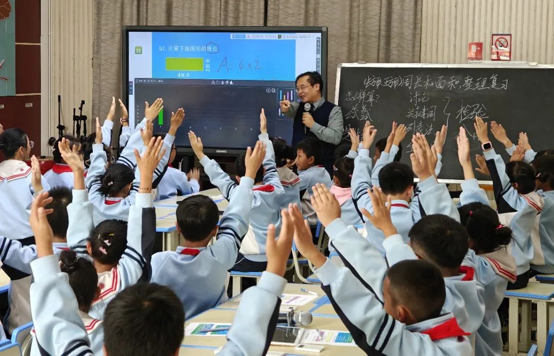 為進(jìn)一步推進(jìn)教育數(shù)字化全局性變革,實(shí)現(xiàn)更加公平、高質(zhì)量的教育,12月15日,“數(shù)字化賦能蒙自教育高質(zhì)量發(fā)展”研討會(huì)在蒙自市團(tuán)結(jié)小學(xué)順利召開(kāi)。紅河州教育科學(xué)研究所所長(zhǎng)白斗、蒙自市教育體育局局長(zhǎng)張愛(ài)林、蒙自市教育體育局副局長(zhǎng)王家陽(yáng),《中國(guó)教育學(xué)刊》四川省學(xué)用刊中心主任陳權(quán)、副主任劉彬,中國(guó)移動(dòng)通信集團(tuán)云南有限公司紅河分公司等本地信息化企業(yè)代表,全市義務(wù)階段學(xué)校校長(zhǎng)、教學(xué)副校長(zhǎng)、教務(wù)主任共計(jì)140余人參加。 研討會(huì)由蒙自市教育體育局副局長(zhǎng)王家陽(yáng)主持,分兩個(gè)階段進(jìn)行。活動(dòng)第一階段,劉彬教授作課小學(xué)四年級(jí)數(shù)學(xué)《長(zhǎng)方形和正方形周長(zhǎng)與面積的整理復(fù)習(xí)》,結(jié)合反饋器和HiTeach5智慧教學(xué)系統(tǒng)與學(xué)生開(kāi)展互動(dòng)。課程結(jié)束,參會(huì)教師通過(guò)蘇格拉底教研平臺(tái)與劉教授進(jìn)行實(shí)地教研,整個(gè)教學(xué)展示活動(dòng)體現(xiàn)課堂教學(xué)評(píng)的一致性,完整呈現(xiàn)出以數(shù)據(jù)為支撐的課堂精準(zhǔn)評(píng)價(jià)。