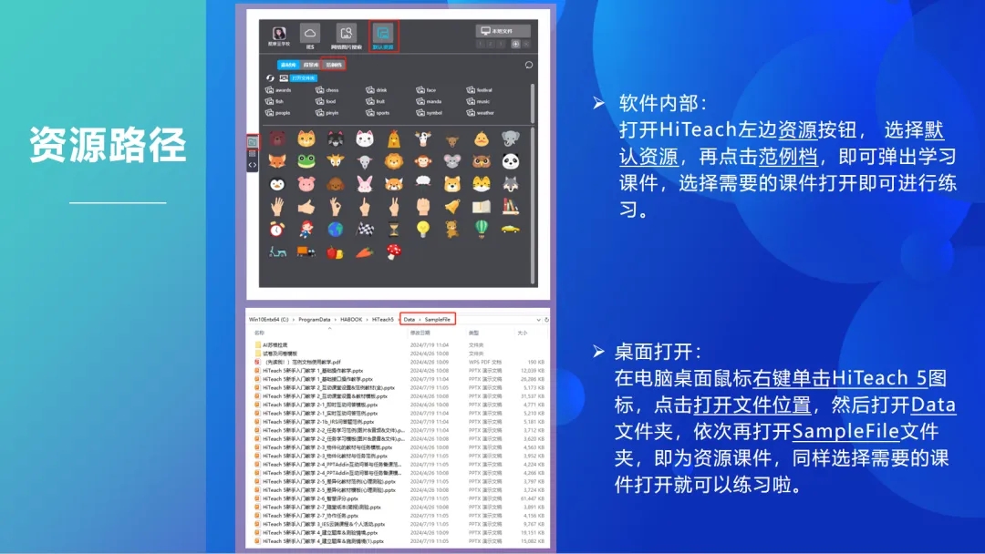 內置學習資源,隨取隨用,盡在HiTeach范例檔。