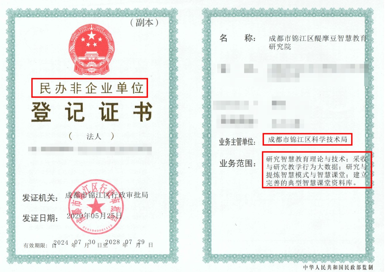 醍摩豆智慧教育研究院,由成都市錦江區(qū)科學(xué)技術(shù)局作為業(yè)務(wù)主管單位,經(jīng)成都市錦江區(qū)行政審批局嚴(yán)格審批,并以非營(yíng)利性社會(huì)組織的身份,整合多方資源,即教育、科技、人才三位一體共同開(kāi)展智慧教育方面的研究,賦能教育現(xiàn)代化,具體范圍如下: